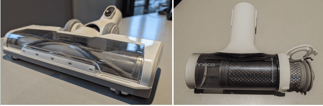 Au déballage, on trouve un grand nombre d’accessoires. Cela va de la grande brosse multifonctionnelle motorisée avec éclairage LED, au petit accessoire pour retirer les cheveux, en passant par le nettoyeur de filtre. Ce dernier est d’ailleurs très pratique puisqu’il permet, en quelques instants de remettre à neuf le filtre à poussières.