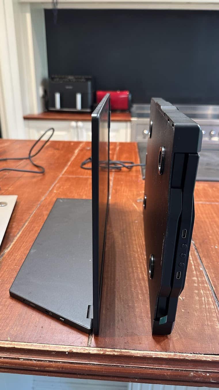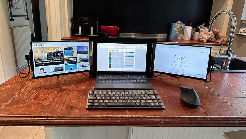 Pour l’aspect pratique : avoir 3 écrans pour travailler est un vrai plus et cela augmente considérablement la productivité. J’ignore s’il est matériellement possible de proposer mieux en portable, cependant moi, je vais garder avec mon écran Philips portable pour le moment.