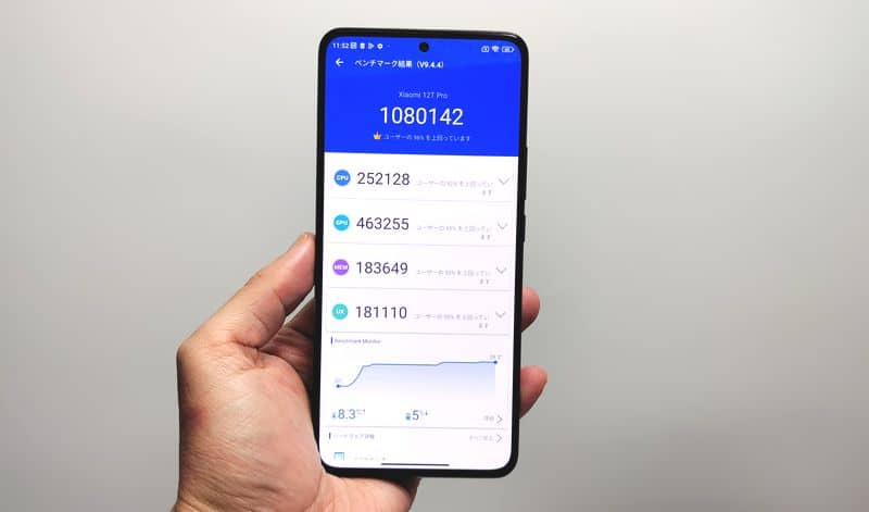 Au quotidien, le Xiaomi 12T Pro est super fluide et agréable à utiliser, les résultats de AnTuTu le place en haut dans le tableau des scores puisqu’il fait partie des téléphones dépassant 1 million de points !