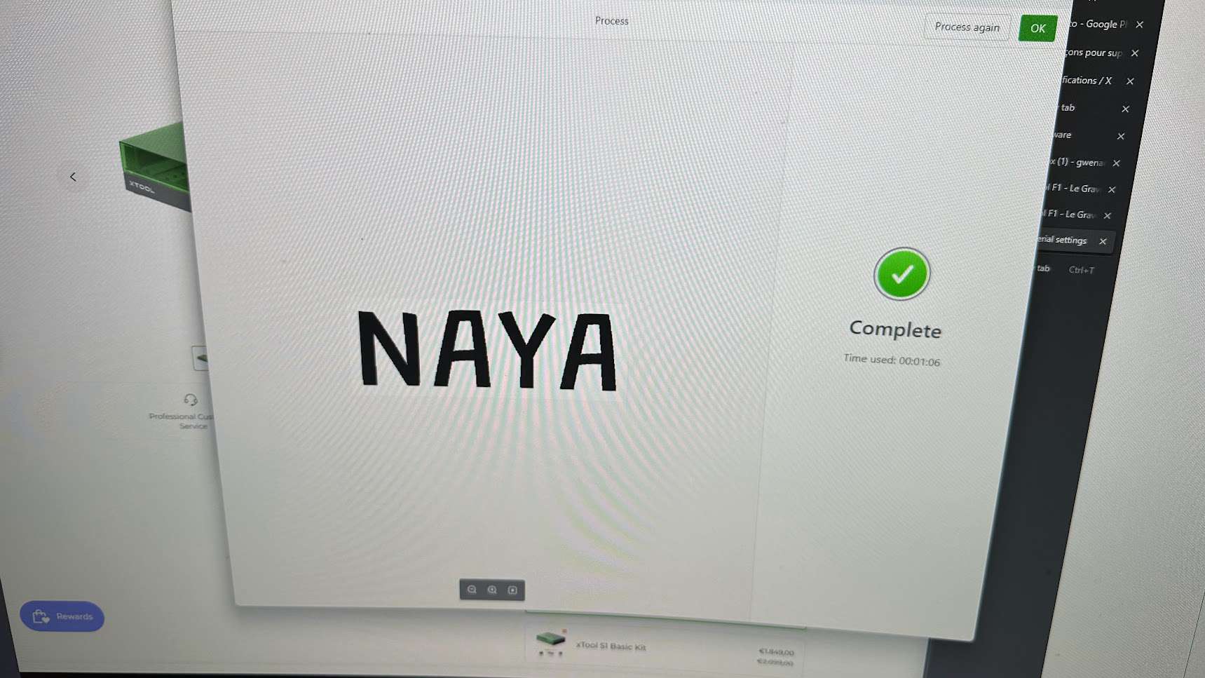 Comme déjà dit, je ferai un article dédié à son sujet, car je m’aperçois que celui-ci est déjà bien long, mais pour faire simple : vous débranchez le câble d’alimentation d’un axe du laser. Vous indiquez au logiciel que vous utilisez le rotary et vous êtes ensuite capable de graver des pièces avec cet accessoire ultra-polyvalent.