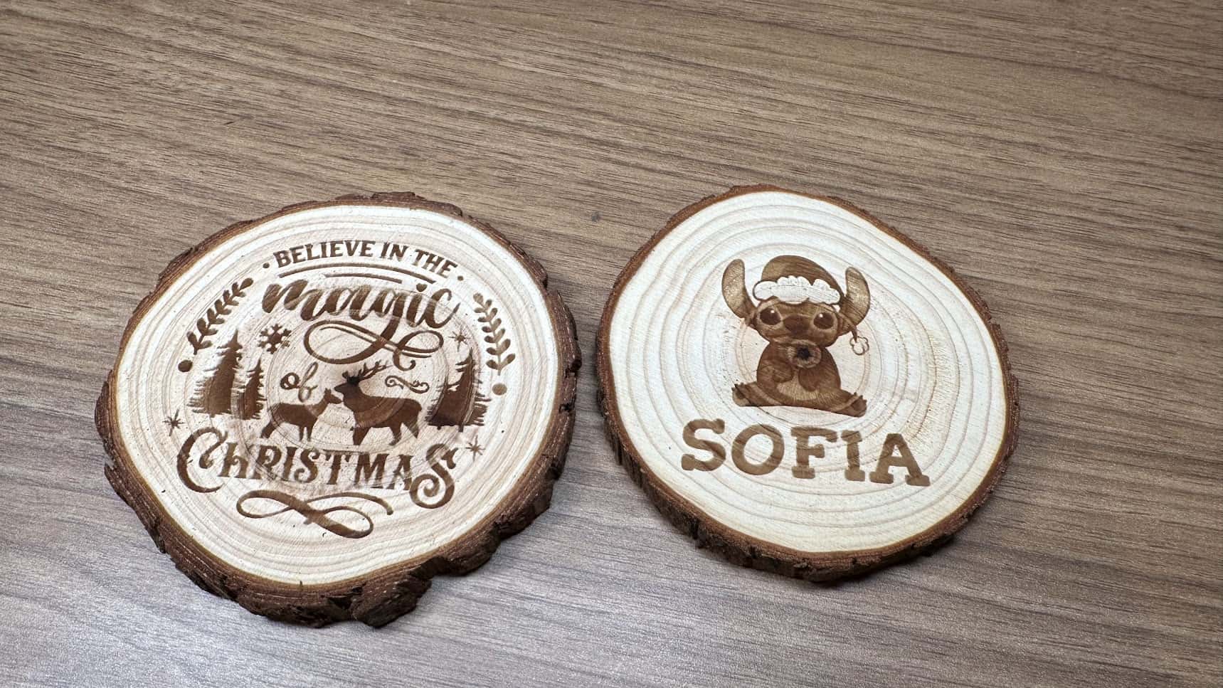 Le premier pour Noël a été trouvé dans le xTool Project et je trouve que cela fait un bel élément de décoration et le second était une tentative pour faire plaisir à Sofia qui adore le personnage de Stich actuellement.