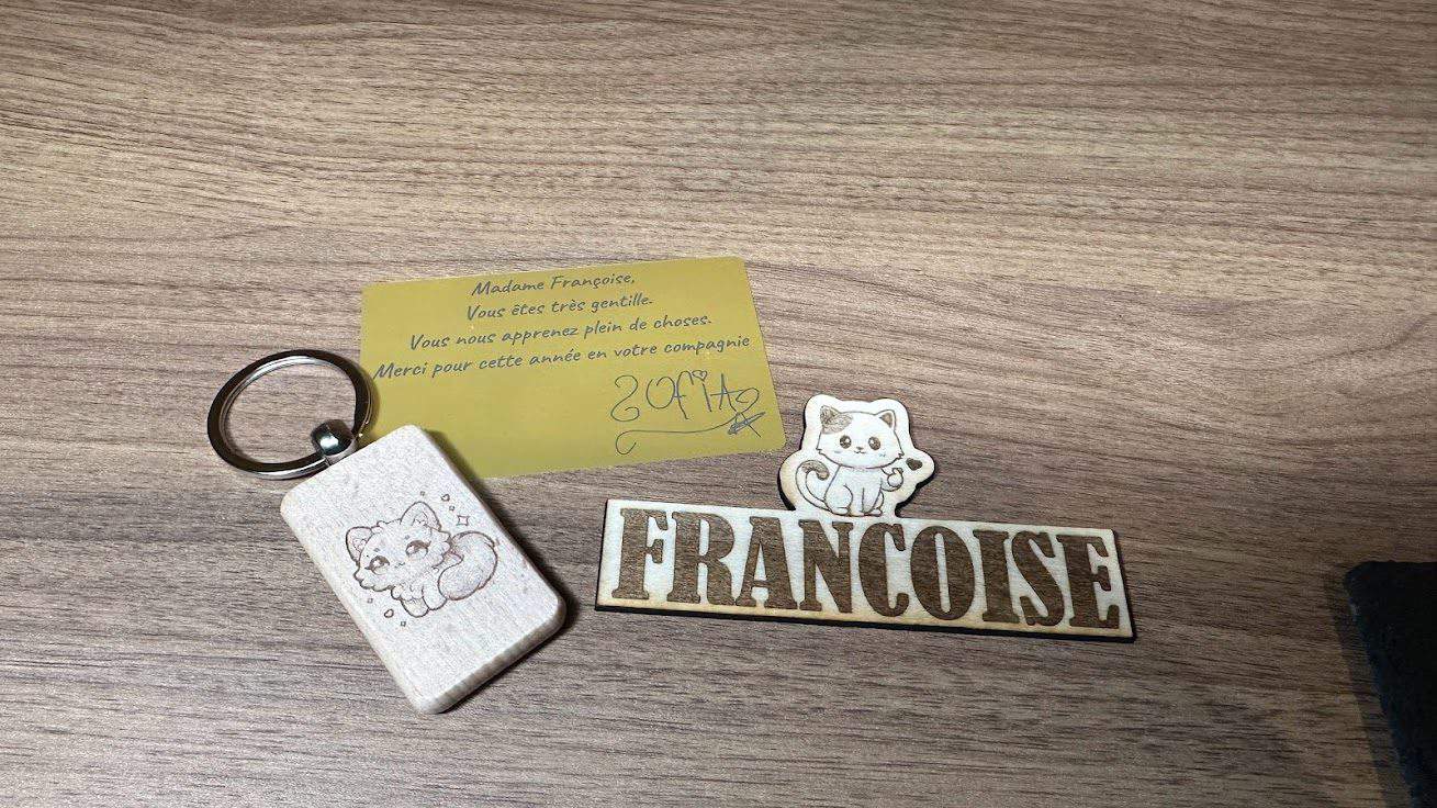 En fin d’année, les enfants réalisent des petits cadeaux pour leurs instituteurs/institutrices et cette fois-ci, ma fille m’a demandé de réaliser quelques créations pour Madame Françoise :