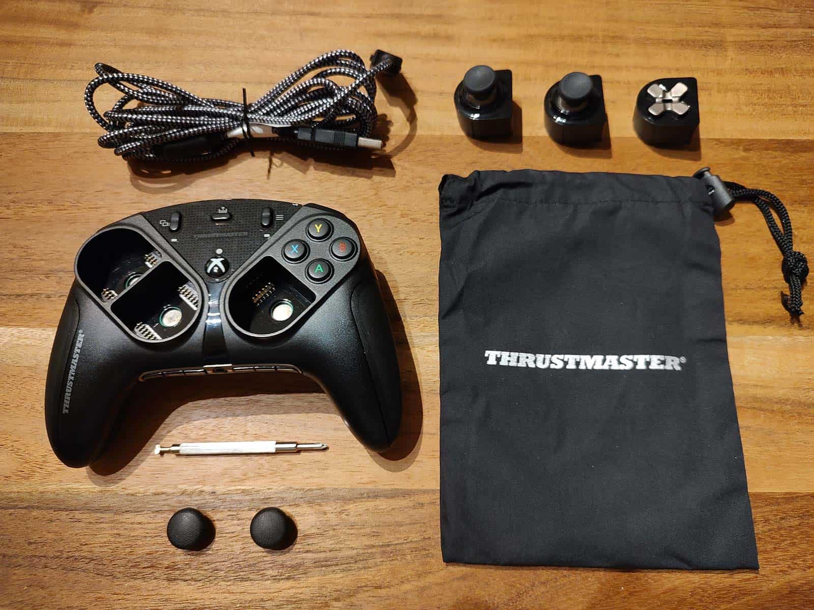 Mais ne crachons pas dans la soupe, la Thrustmaster eSwap X Pro est très appréciable, même sans accessoire. Voyons d’ailleurs plus en détails ce que contiennent les deux packs additionnels que j’ai reçus.
