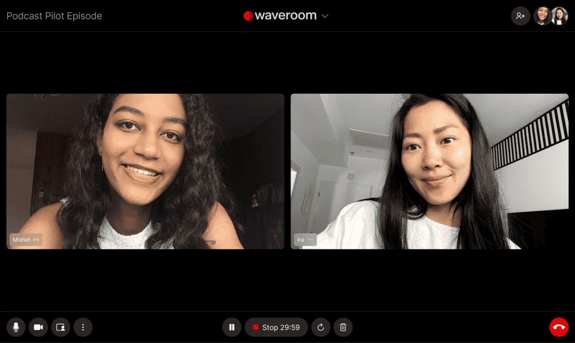 Comme indiqué dans le titre : WAVEROOM est un studio d’enregistrement vidéo dans le cloud utilisable pour tous vos projets vidéos; que ce soit seul ou en groupe. Il permet de réaliser des enregistrements vidéo 4K et audio WAV sans perte. Dans le cas d’une vidéo à plusieurs, le système enregistre la vidéo et l’audio de chaque participant individuellement, de sorte à recomposer plus tard une vidéo globale de très haute qualité, même si la connexion de l’un ou de l’autre est un peu limite.