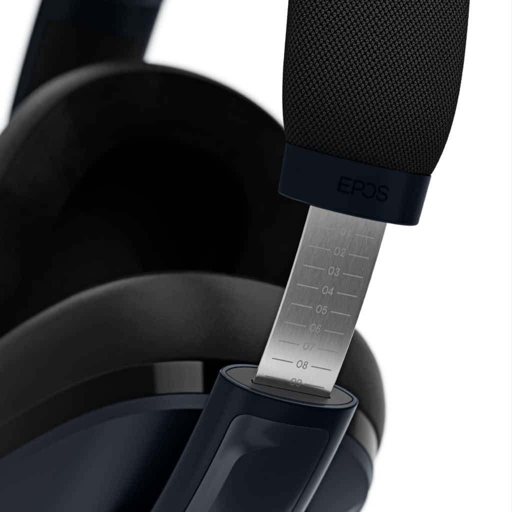 Comme je vous le disais je n’avais jamais eu l’occasion de tester cette marque et le moins que l’on puisse dire c’est qu’une fois en mains, le EPOS H3PRO Hybrid sent bon la qualité de fabrication. Le casque est fait de plastique qui semble bien solide. L’arceau quant à lui est fait de métal avec différents crans pour ajuster la taille et toujours se souvenir de votre paramètre. Celui-ci est recouvert de tissu sur le haut et de cuir rembourré à l’intérieur pour plus de confort.