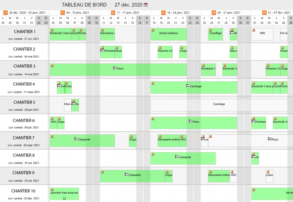 Pour un entrepreneur, un installateur de panneaux photovoltaïque, un jardinier, etc : il y a la notion de chantier qui apparait en plus du reste. Cela signifie qu’il est important de pouvoir prévoir un planning afin d’organiser les prestations de chantier réalisées chez les clients directement pour vous seul, ou alors pour votre ou vos équipes. Il faudra gérer les imprévus : la météo, les maladies, le matériel pas livré et un bon logiciel vous permettra d’appréhender tout ça de manière bien plus efficace.