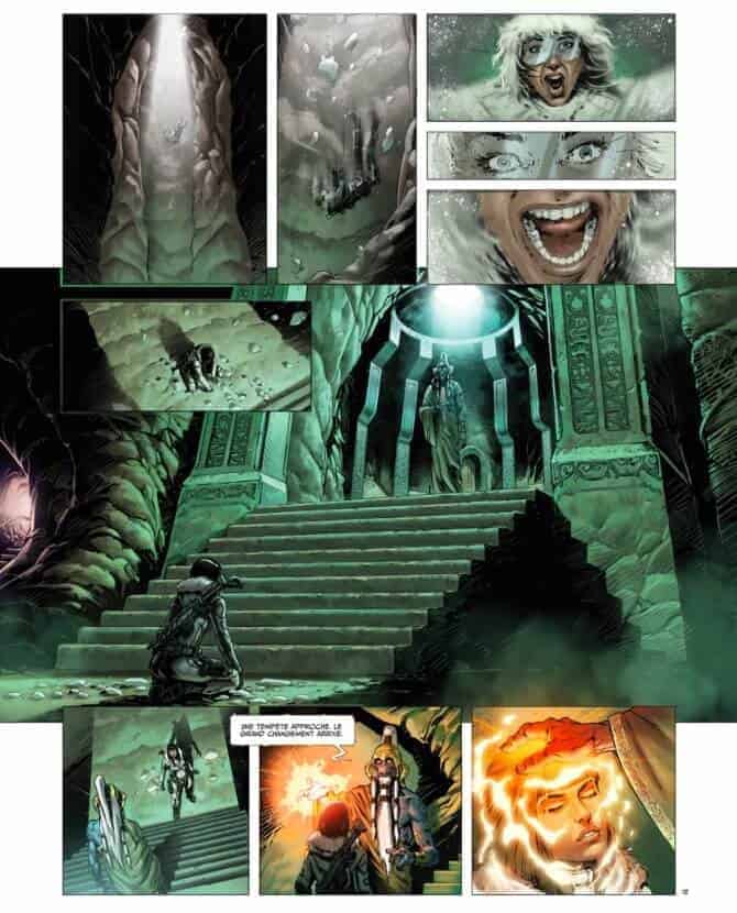 Côté style graphique on a affaire ici à plusieurs auteurs français. Et il faut avouer que le genre est bien respecté d’un tome à l’autre car j’ai eu l’impression que c’était tout le temps la même personne. Les effets de lumières et de mouvement sont vraiment bien reproduits et donnent un sentiment cinématique indéniable. Idem pour les sublimes doubles pages spatiales ou de paysages.