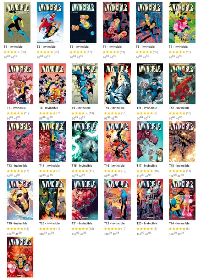 25 tomes !!! Rendez-vous compte de la quantité de choses qui se sont passées pour les héros d’Invincible. De l’attaque des calmars aux dimensions parallèles en passant par les multiples voyages dans l’espace, les aventures de Mark sont quasi sans fin. Et pourtant fin il y a bien au bout plus de 4000 pages de comics. Il est très compliqué pour moi de vous donner un avis sur autant de contenu. Mais pour vous donner une idée de l’interêt et de la qualité de la narration sachez que j’ai dévoré les tomes en moins de deux semaines tellement je voulais découvrir la suite.
