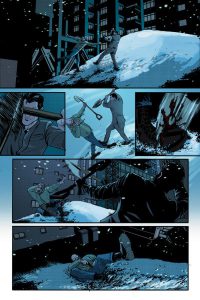 Heureusement pour moi arrivé à la moitié du comics j’avais oublié la ressemblance et je me laissais happer par toutes ses expérience visuelles auxquelles se laisse aller Masters. Changement de case, personnage en mouvement, double planche avec ellipse temporelle… autant d’effets que Jason Masters maîtrise à la perfection pour le bonheur de nos rétines.