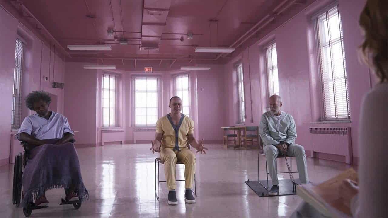 Petit rappel : dans Incassable, Bruce Willis incarnait David Dunn, un père de famille qui se découvrait la capacité et la force de sauver des gens en détresse. Pas de cape, pas de collants, mais une volonté inébranlable d’aider son prochain. Une révélation signée Elijah Price (Samuel L. Jackson), un véritable génie (du mal ?) qui cherchait désespérément un homme parfait comme Dunn pour justifier son existence : celle de son opposé, imparfait et capable de tuer des innocents pour arriver à ses fins. Dans Glass, le duo binaire est accompagné de la Horde (James McAvoy), un personnage contenant plus de 20 personnalités dont la Bête, une brute surpuissante qui enlève des filles… on ne sait pas trop pourquoi (et ça n’a pas d’importance).