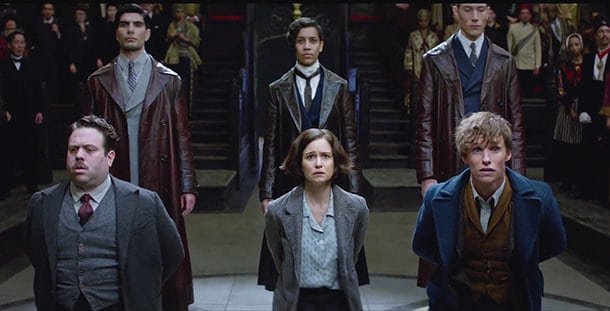 Je me dois également de mentionner le superbe casting pour les animaux fantastiques. On découvre avec plaisir 4 nouveaux acteurs, fort bien choisis et très talentueux pour camper les 4 rôles principaux, le tout supporté par quelques guests et non des moindres. Avec Colin Farrell dans le rôle de Percival Graves, Jon Voight dans le rôle du père d’un sénateur mais aussi…une brève apparition de Johnny Depp (Gerardo Grindewald), le moins que l’on puisse dire c’est que les choses n’ont pas été laissées au hasard. Même si je dois avouer avoir été un peu dubitatif au départ sur le personnage principal, celui-ci a réussi a me convaincre au fil du film par sa performance très juste de ce magicien un peu introverti mais avec de grandes valeurs. J’ai par ailleurs été séduit assez rapidement par Tina (Katherine Waterston), jouant à merveille la fille un peu coincée, respectant les règles mais ô combien séduisante.