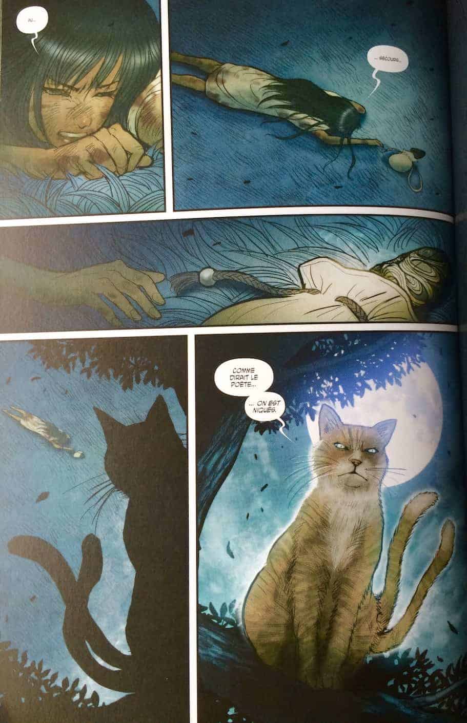 L’univers des contes japonais est régulièrement utilisé. Principalement dans les mangas, parfois dans des romans graphiques mais c’est bien plus rare en comics. Pour ma part j’ai très souvent pensé à Naruto* en lisant Monstress. Marjorie Liu est une romancière à succès et n’en n’est pas à son premier fait dans l’univers des comics. Elle prouve une fois de plus son talent en offrant aux personnages une palette de caractère suffisamment complexe que pour ne pas tomber dans le classique “mauvais vs gentils”.