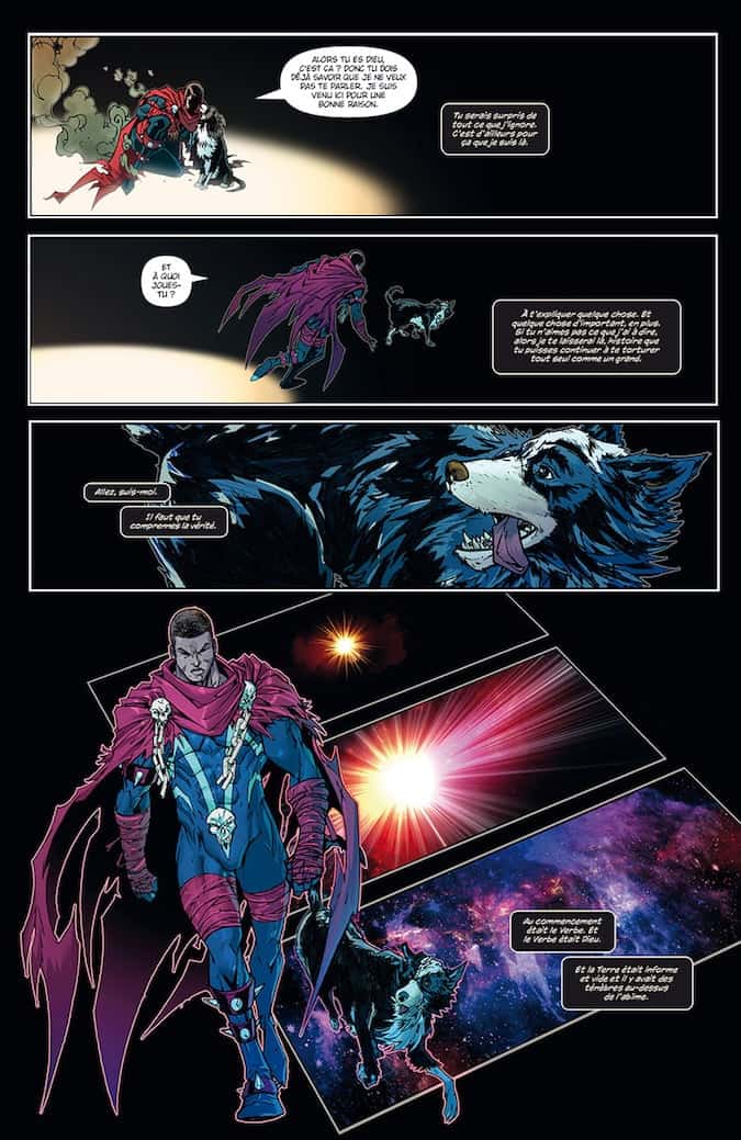 Malgré mon ignorance je dois admettre que j’ai pu suivre sans soucis cette nouvelle histoire narrant le retour d’Al Simmons. Et au pire il, me suffira de me diriger vers l’un ou l’autre run de Spawn pour combler mes lacunes. Mais ce ne serait que pour ma curiosité car l’histoire est presque totalement compréhensible, même pour un néophyte. Pour ce qui est de juger si l’histoire est intéressante, il faudra voir sur la suite mais, à moins de sortir 15 tomes, le scénario me semble plutôt intéressant et met assez bien en valeur notre cher Spawn.