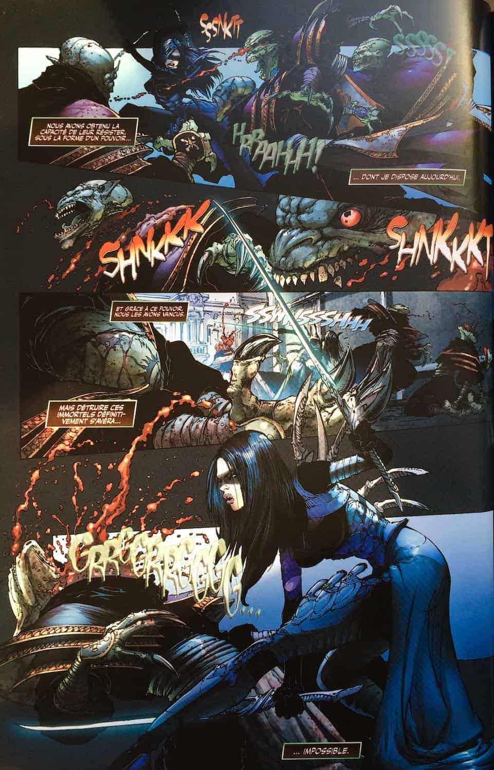 Ceci dit, l’histoire reste tout de même intrigante. Malgré les premières images du comics qui nous font découvrir une Mélanie en pleine possession de ses pouvoirs. Ce qui rend assez inutile le cinéma autour du fait de savoir si oui ou non elle va s’en sortir dans ce 1er tome. Reste le plaisir de la découverte des personnages, Valin (qui aurait du hériter du Wraithborn) a vraiment la classe. Brijit est assez risible et me fait limite penser à un méchant dans Power Rangers. Mélanie quant à elle est vraiment intéressante et mêle de manière intelligente, maladresse et style qui font qu’on s’attache très vite à elle.