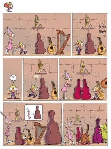 Game Over T17, comme les précédents albums, est un enchainement de gags plus qu’une histoire et franchement, j’adore. On se délecte de cet humour complètement absurde et on constate que l’humour muet peut être tout aussi efficace que les autres s’il est bien mis en scène. Les gags sont comme toujours super drôles et la bêtise de la princesse n’a d’égal que son amour pour le petit barbare. Celui-ci rivalisant d’ingéniosité afin d’essayer d’arriver à la fin du stage, n’y arrivant jamais vu que quelque chose vient toujours se mettre en travers de son chemin, le plus souvent sa propre dulcinée d’ailleurs.