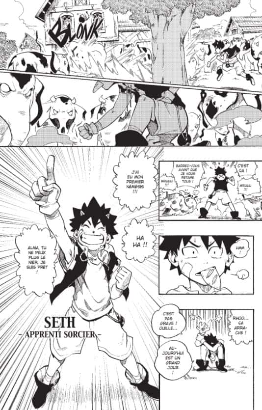 Cela dit l’auteur, Tony Valente, arrive à utiliser les codes des Shônen* à la perfection. Il n’est donc pas étonnant que ce Radiant ait très vite été racheté par le japon afin d’en produire un animé (qui n’est pas mal au passage). L’histoire met en scène un Seth qui ne déroge à aucun cliché du genre, faible au début mais au pouvoir immense caché, comique mais classe, un peu gauche mais qui s’attire très vite l’amour des personnes qu’il approche. Sans oublier que l’auteur est un Français et cela se ressent vraiment dans les dialogues qui sont excellents et ne souffrent donc d’aucun souci de traduction.