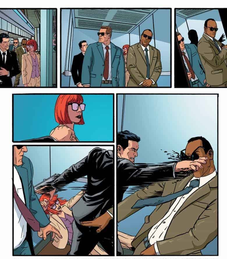 Heureusement pour moi arrivé à la moitié du comics j’avais oublié la ressemblance et je me laissais happer par toutes ses expérience visuelles auxquelles se laisse aller Masters. Changement de case, personnage en mouvement, double planche avec ellipse temporelle… autant d’effets que Jason Masters maîtrise à la perfection pour le bonheur de nos rétines.