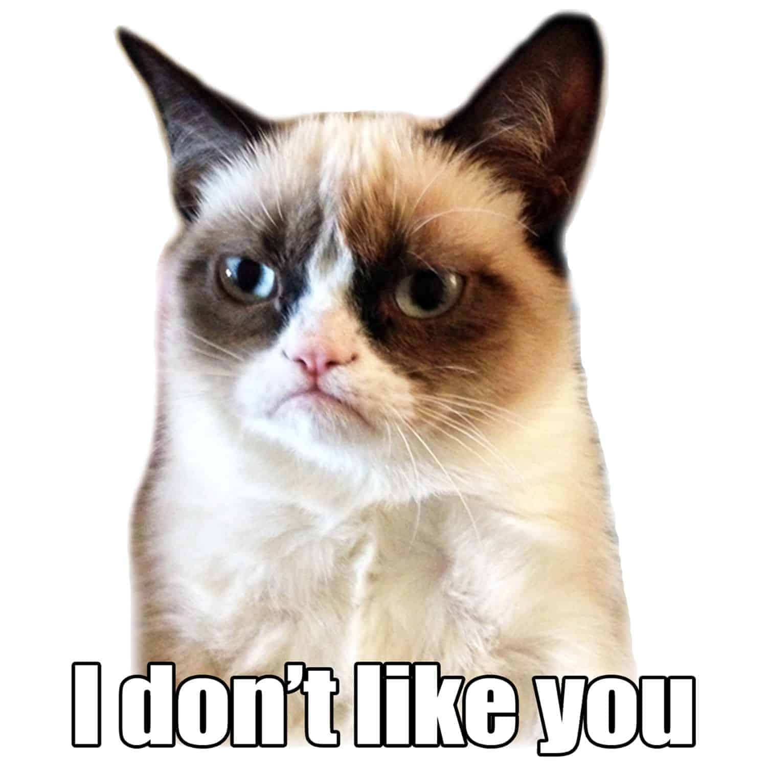 Comme vous le savez, Internet voue un véritable culte envers nos petits compagnons félins; certains se demandent même à quoi ils pouvaient bien servir avant Internet. Bref, en 2012, alors que l’on pensait avoir tout vu en matière de cascades, fourberies et autres vidéos hilarantes mettant en scène des chats, le Grumpy Cat débarque. Ce chat qui, n’a à priori rien de drôle et tire la tronche en permanence, va devenir la coqueluche du net et se retrouver sur d’innombrables mèmes hilarants lui prêtant des propos cyniques collant parfaitement avec son image.