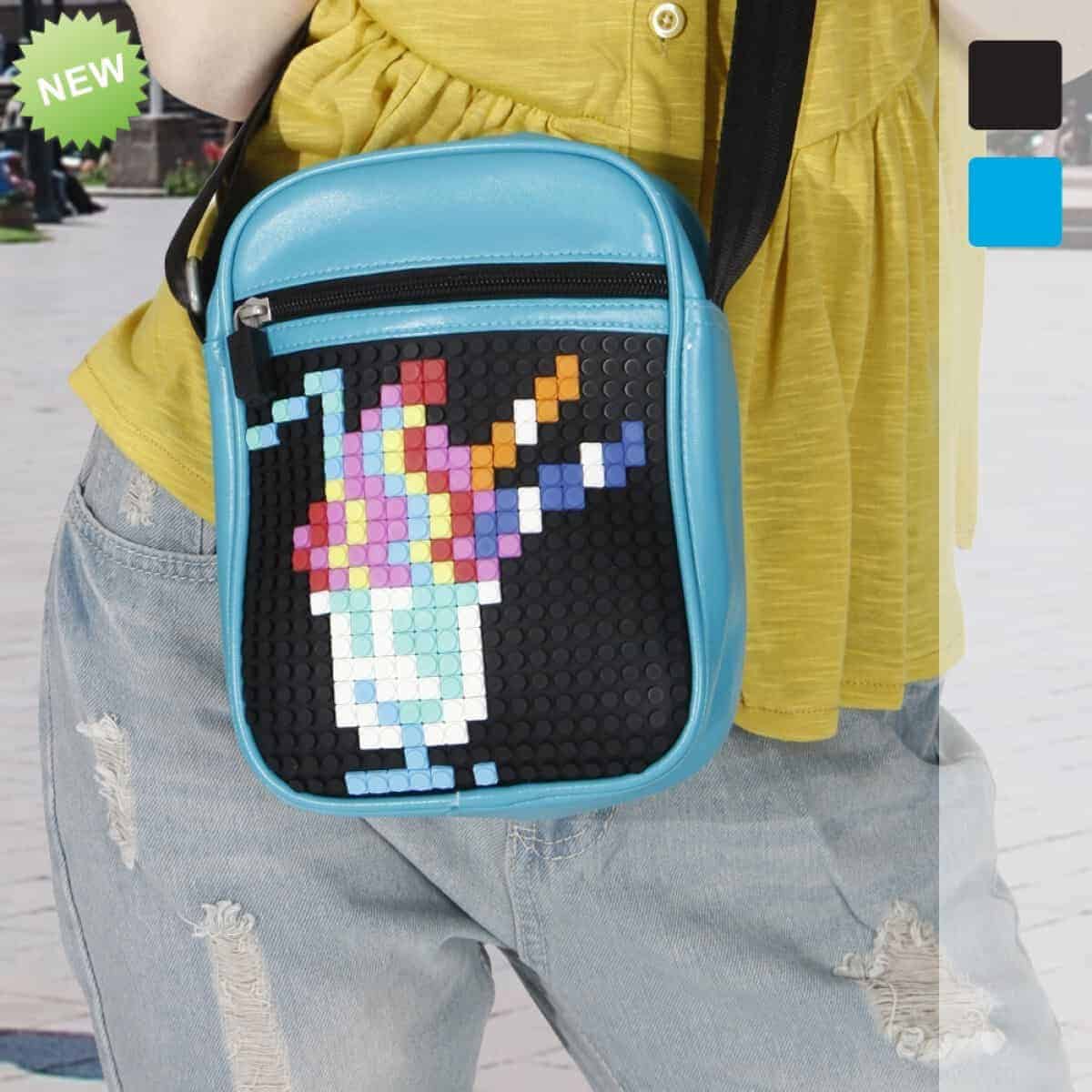Ce week-end, j’ai eu le plaisir de recevoir un Pixelbags, le nouvel accessoire à la mode de tout geek qui se respecte. Croisement improbable de sac à dos et de pixels en gommettes, l’objet ravira à la fois les amateurs de low def’ comme moi, et les cheeks qui sommeillent en chacun de nous, mélange subtil de chic et de geek. L’idée est tellement simple qu’on peut se demander comment personne ne l’avait eue auparavant : la surface extérieure du sac est revêtue d’un tapis caoutchouté antidérapant, aux picots plus ou moins gros en fonction du modèle choisi (il existe deux tailles de pixels par rapport au Pixelbags ou à l’accessoire sélectionné), et les petits pixels en caoutchouc viennent s’emboîter les uns à côté des autres. Les pixels s’achètent en exclusivité dans tout le réseau de magasins Consoles-Fan pour quelques euros, et vous risquez vite de tomber dans le syndrome des perles Hama : on commence par rechercher des patterns de graphismes 8 bits à créer, puis on se rend compte qu’il manque une ou deux couleurs, et tout à coup c’est l’escalade pour réussir à dessiner ce sprite de Link dans Zelda 3, ou ce champignon de Mario Bros qui vous tente tant.