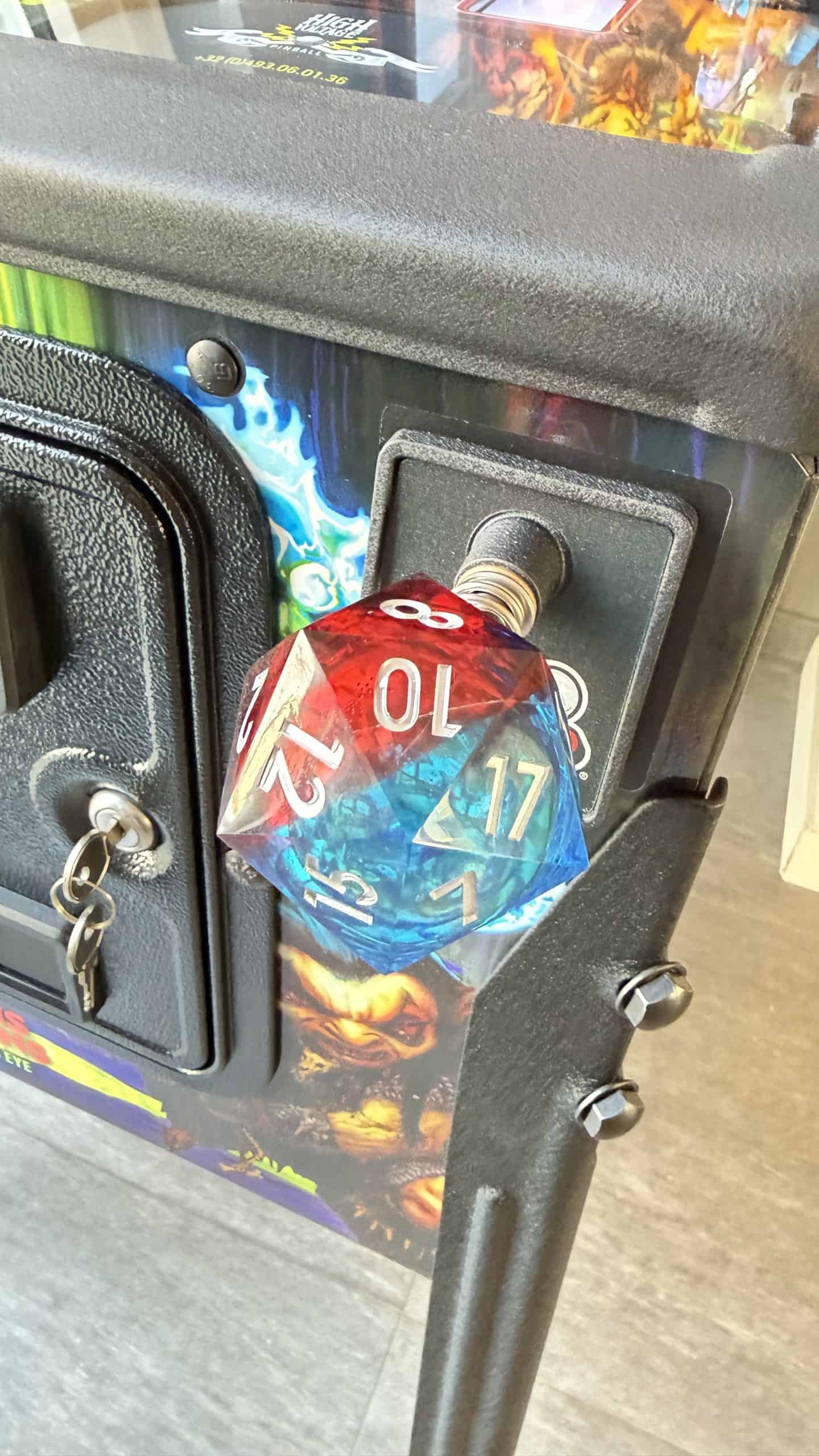 Petit custom qui fait plaisir, j’ai un lanceur avec un dé 20 faces, initialement prévu pour un flipper Stranger Things, mais qui s’accorde merveilleusement bien avec celui-ci.