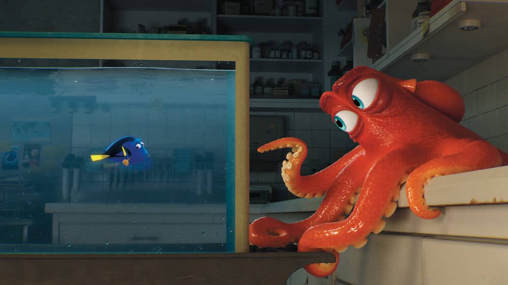 Dès les premières minutes du film vous serez attendri par une Dory enfant qui nous a fait fondre. Son histoire est émouvante et belle à la fois. On découvre en accéléré l’histoire de son enfance pour arriver à la rencontre de Dory avec Marin. Le Monde de Dory nous propulse un an après l’histoire du monde de Nemo. A partir de là il faut avouer que Disney est plutôt doué pour réutiliser la recette du 1er film en y apportant ce qu’il faut de nouveauté, que l’on ait pas l’impression d’assister à un simple copié-collé. C’est ainsi qu’au milieu des personnages que l’on connaissait déjà viendront s’ajouter pas mal de nouveaux personnages : un poulpe ninja complètement loufoque, une baleine myope, une baleine à bosse dépressive, des éléphants de mer (dont un assez spécial qui était à la limite hors contexte) et j’en passe.