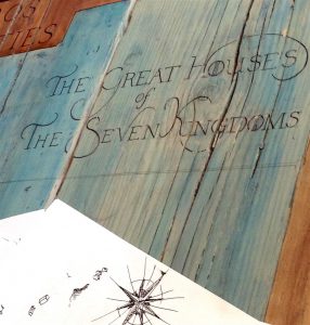 Alors que la saison 7 de Game of Thrones vient de s’achever il y a quelques mois en laissant l’ensemble des fans pantois et qu’il faudra attendre jusqu’en 2019 pour connaître la suite des aventures de Jon Snow, Daenerys et compagnie, je vais vous présenter le plus bel objet que j’ai en ma possession dédiée à cette saga épique : une carte du monde en exemplaire unique sur l’univers du trône de fer, peinte à la main, à la façon des cartes maritimes du 15ᵉ siècle par Christelle Cam Lions.