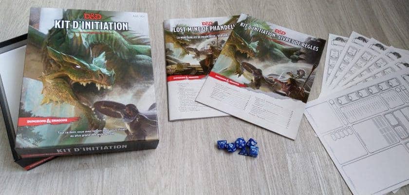 Dungeons & Dragons 5 – Kit d’initiation est la boîte d’initiation éditée par Gale Force Nine et distribuée par Black Book Éditions aux couleurs du plus célèbre jeu de rôle. Sortie en mars 2018, ce kit s’avère bien maigre en contenu, avec un livret de règles de 32 pages et un livret de campagne de 63 pages.