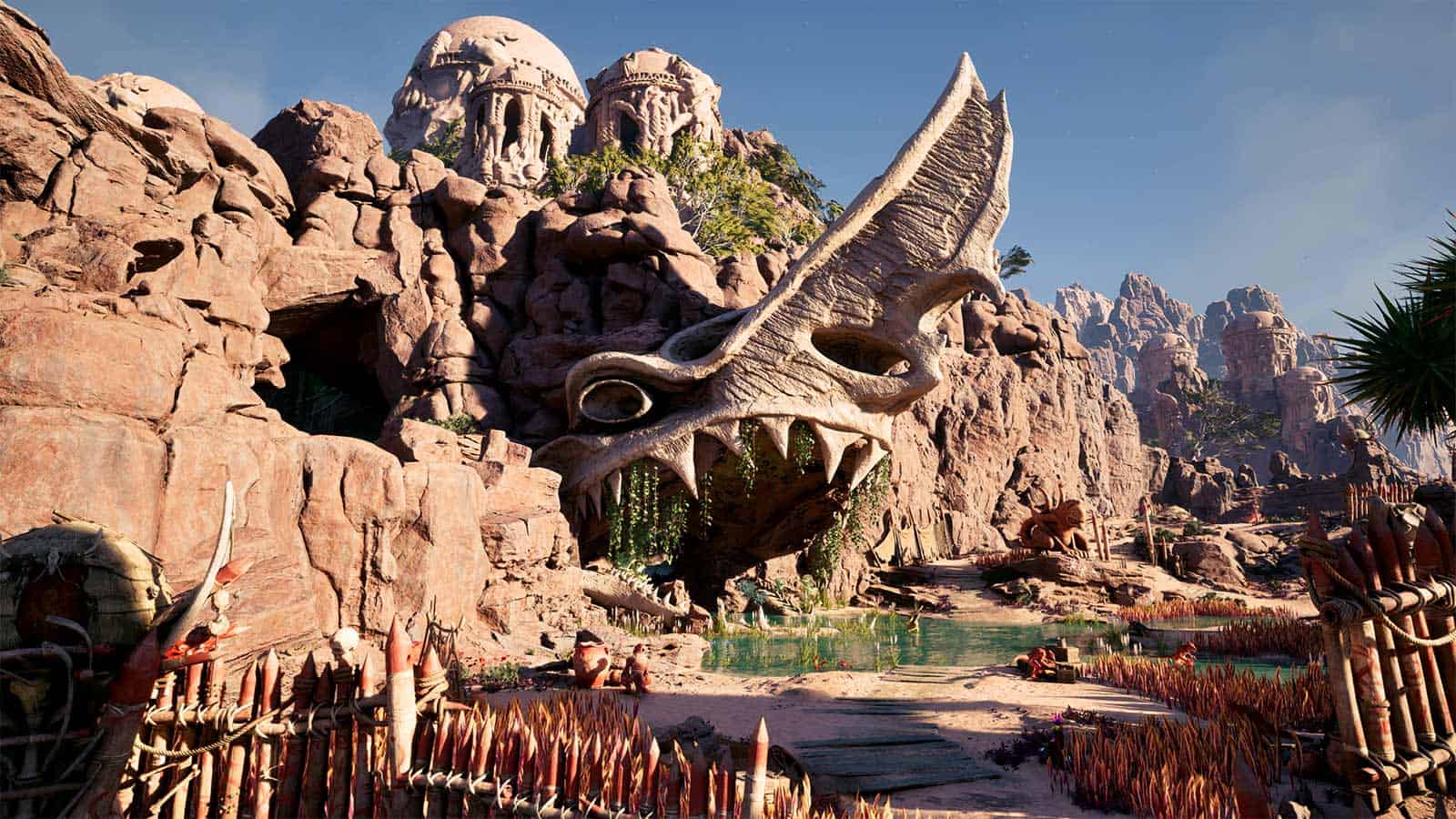 Étant donné que le jeu a fait polémique avant sa sortie, je vais directement aborder le sujet de la création de personnage. Dans Avowed, on incarne un héros aux pouvoirs divins, ce qui implique des différences physiques que l’on peut choisir d’afficher ou pas. Si on le désire, on peut donc arborer fièrement un look de Claqueur à la The Last of Us version arc-en-ciel. On peut même pousser l’inclusivité plus loin en forçant les PNJ à utiliser le pronom “iel” quand ils parlent de nous. Mais on peut également choisir de jouer tout à fait normalement, sans avoir à se soucier de ces considérations. À la manière de Dragon Age: The Veilguard, le jeu nous laisse donc le choix et ça, c’est bien. Et tant qu’à parler des similitudes avec Dragon Age, notons que Avowed est un semi-open world constitué de plusieurs cartes articulées autour de camps dans lesquels on peut faire sa popote… Et la différence s’arrête là, car contrairement au dernier titre de BioWare, le tout fonctionne super bien ! Les maps sont bien construites, le jeu pousse à l’exploration et sait récompenser le joueur, il y a des tonnes de bâtiments à fouiller et d’édifices à escalader, et le tout regorge d’artefacts à trouver qui viennent enrichir un lore pourtant déjà très développé.
