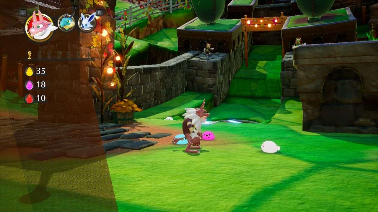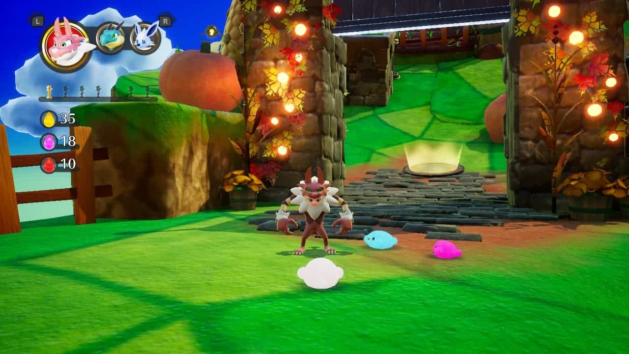 Dès le début de Balan Wonderworld on sent qu’on va se trouver dans un monde hyper coloré et kawaii comme savent le faire les japonais. Le scénario n’est pas évident à comprendre et je vous avoue qu’il est anecdotique. On suit essentiellement les aventures de 2 personnages à travers le monde magique du clown Balan. Comme je vous le disais, afin de pouvoir progresser, il faudra utiliser des costumes pour franchir les montres ou les obstacles. L’un de ces premiers costumes sera par exemple celui de Lourbillon. Celui-ci vous transformant en loup capable de sauter en tourbillonnant.