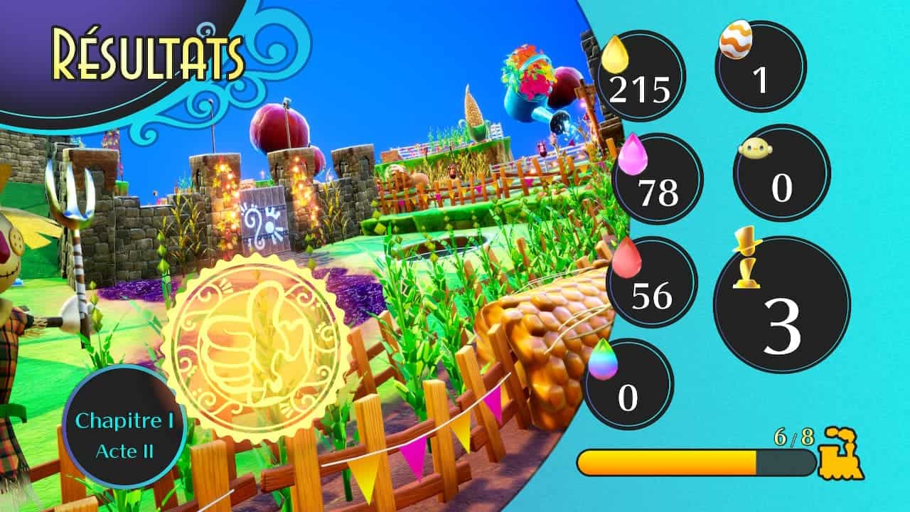 Et c’est bien là que le plus gros souci de Balan Wonderworld se situe, au niveau du gameplay. Malgré le fait qu’il soit articulé autour d’un seul bouton, permettant ou de sauter ou d’utiliser le pouvoir, le tout n’est pas maitrisé. Entre manque de précision dans les sauts, pouvoirs redondants voire inutiles et multiple soucis de caméra, pas toujours évident de s’en sortir. Pourtant, j’avais vraiment envie d’y retourner mais ca manque de finition. Rajoutez à cela une difficulté bien trop simple y compris pour les bosses et vous avez un ensemble non fini.