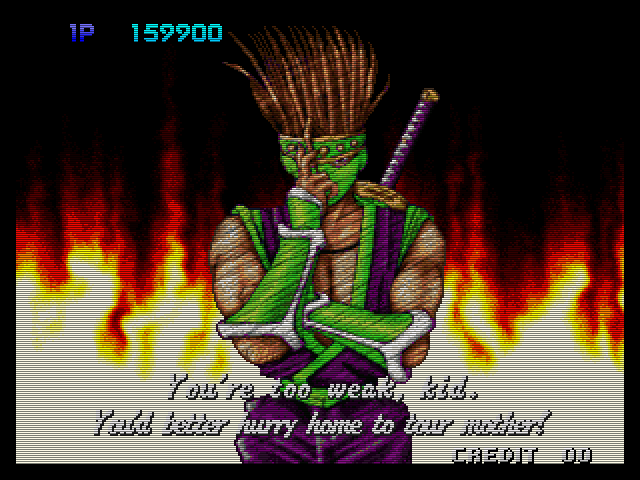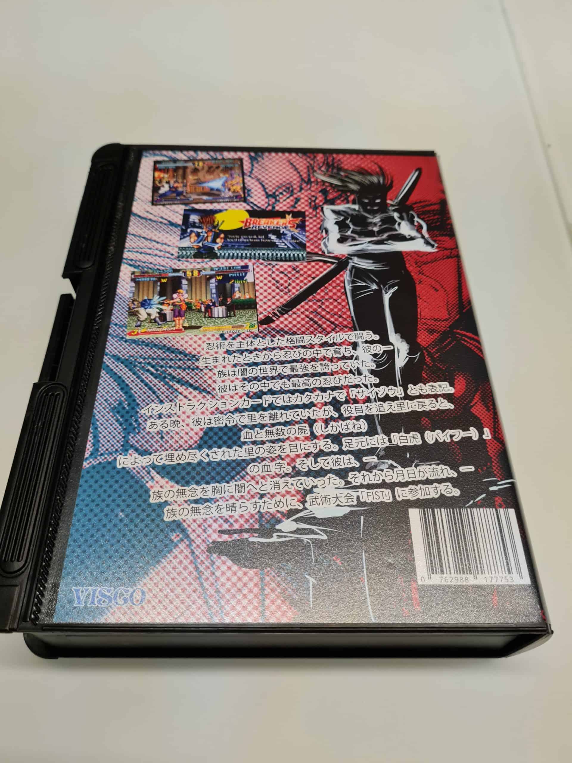 Il se contente en effet d’apporter un personnage supplémentaire, Saizo le ninja badass, un réglage au niveau du handicap en mode versus et quelques modifications graphiques dans les décors. Bizarrement, un personnage a troqué sa nationalité italienne contre la française. Je suppose que c’est une histoire de coupe du monde de football… En 2016, le titre sort officiellement dans un format AES inédit! C’est en 2020 que PixelHeart et JoshProd récupèrent la licence Visco et continue de la distribuer au sein d’un catalogue AES de plus en plus fourni.