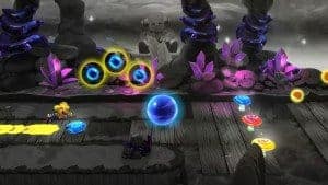 Jusque-là c’est assez simple me direz-vous sauf que tout le fun réside dans la quête de la perfection, la capacité à ramasser toutes les boules dans le bon timing avec le bon personnage et ce afin de faire le score le plus élevé possible. Pour vous donner une idée, c’est pour moi un mélange entre Sonic pour le coté course de gauche à droite linéaire et Guitar Hero pour l’enchainement des couleurs et de combos tout au long du chemin. Tout comme dans ce dernier, si vous manquez quelque chose sur le parcours, ce ne sera pas trop dommageable mais la partition ne sera pas parfaite.