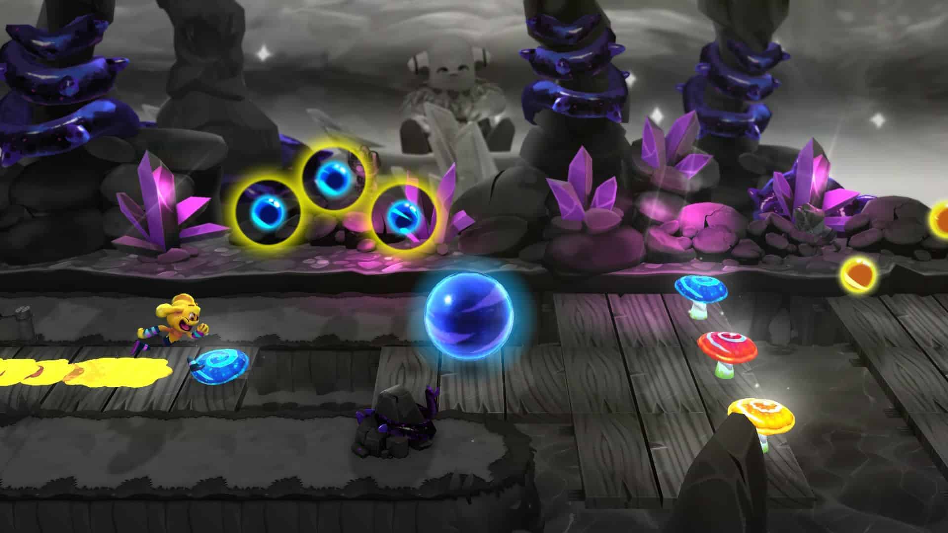 Le concept de Color Guardians sur PS4 est assez simple. Vous incarnez l’un des 3 héros ayant la lourde tâche de ramener les couleurs dans leur monde après que toutes celles-ci aient été enlevées. Comment ? En ramassant les petites boules de couleurs dans des parcours linéaires de gauche à droite où il vous faudra faire preuve de dextérité pour changer de couleur de personnage au bon moment et changer de ligne de course afin d’éviter les obstacles parsemés tout au long du chemin.