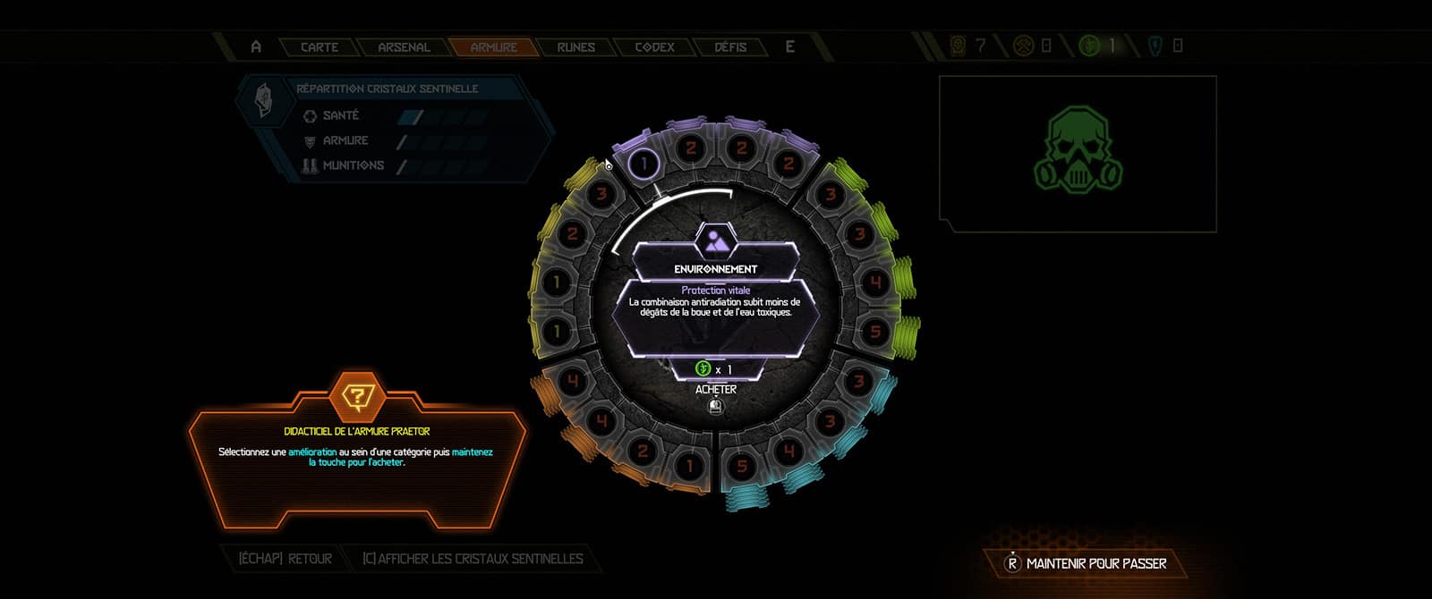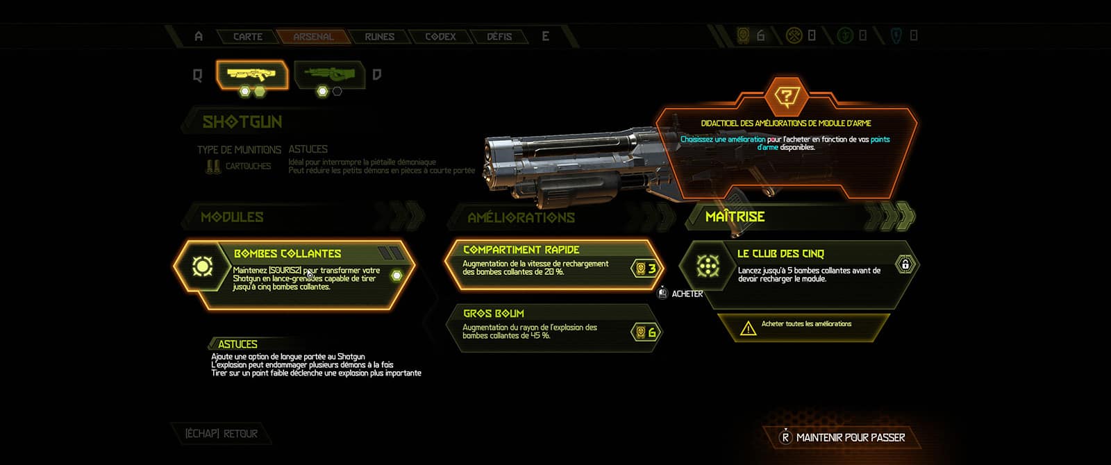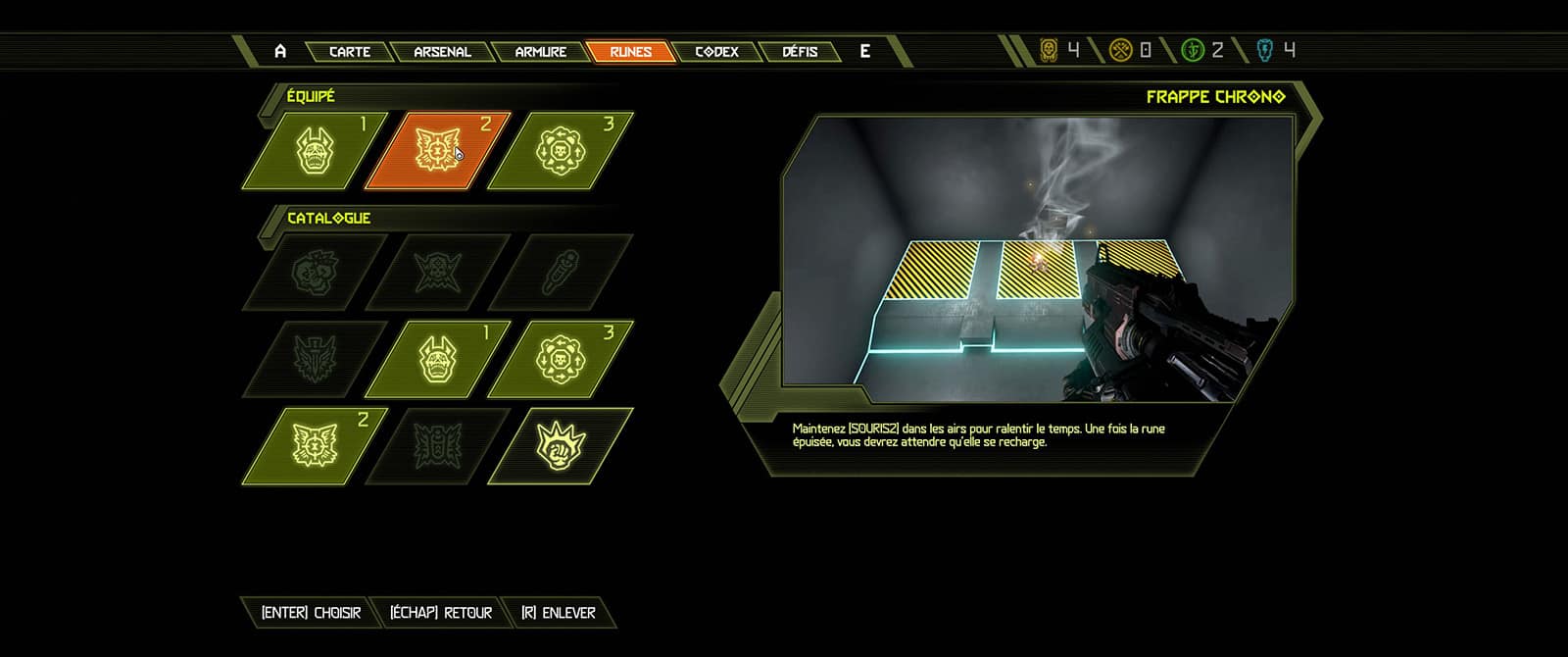 Comme son prédécesseur, Doom Eternal a toujours ce petit côté RPG bien sympathique. En effet, il est possible de personnaliser ses armes grâce à des mods et à des améliorations. L’armure prétorienne pourra également être customisée à souhait. Notons aussi qu’il sera possible d’acheter des runes proposant un large éventail d’options et d’en équiper trois. Cela permet, par exemple, de pouvoir ralentir le temps quand on est en l’air pour pouvoir tirer tranquillement sur tout ce qui bouge. Mais bien évidemment, tout cela a un prix. Et pour ce faire, il faudra relever certains défis ou trouver les items adéquats disséminer un peu partout dans les niveaux.