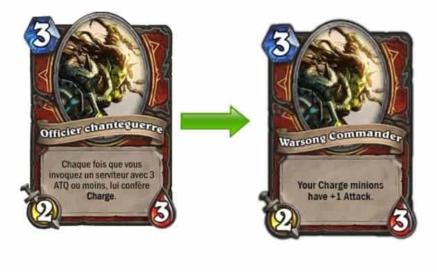 [MISE EN GARDE : Cet article, consacré au monde du jeu Heartstone, peut faire saigner quelques yeux non initiés ] Blizzard a-t-il tué le deck client sinistre ce matin ? Depuis quelques semaines, l’éditeur réfléchissait à modifier le nerf du deck client sinistre (grim patron en anglais), jugé trop fort. Une menace mise à exécution avec une mise à jour de ce mercredi 21 octobre. L’idée (qui a fait couler beaucoup d’encre) : modifier les attributs de la carte officier chanteguerre (Warsong Commander en anglais) qui, pour faire court, ne donnera plus charge !