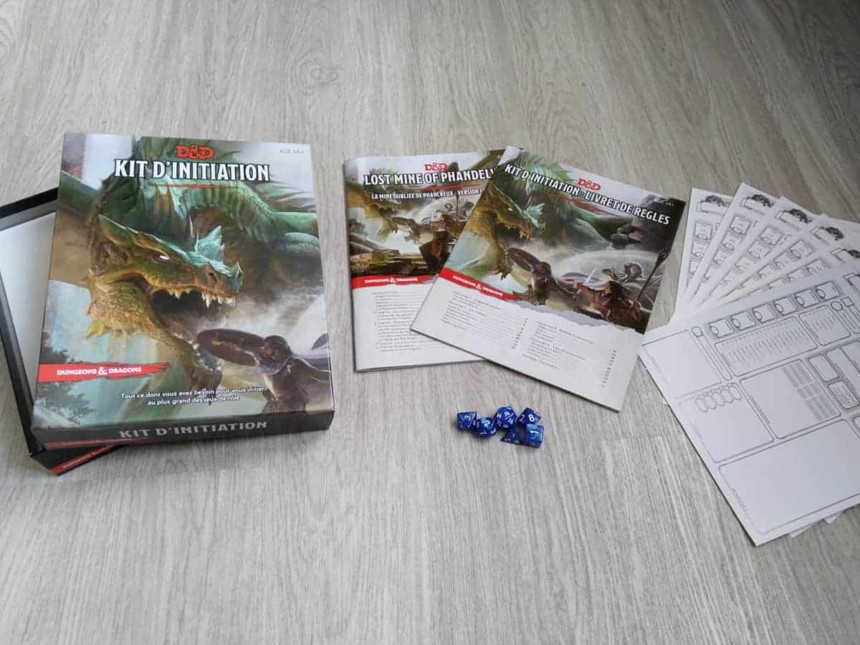 Dungeons & Dragons 5 – Kit d’initiation est la boîte d’initiation éditée par Gale Force Nine et distribuée par Black Book Éditions aux couleurs du plus célèbre jeu de rôle. Sortie en mars 2018, ce kit s’avère bien maigre en contenu, avec un livret de règles de 32 pages et un livret de campagne de 63 pages.