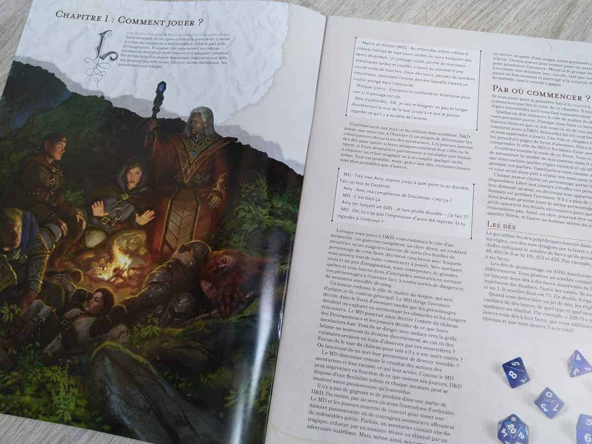 Quand j’ai feuilleté pour la première fois le kit d’initiation D&D5, j’étais perplexe. Je me suis dit que pour de l’initiation, ça restait assez dense et complexe (quand on compare à Chroniques Oubliées, par exemple). Mon confrère Cédric (qui avait testé Dragons) m’a cependant proposé une réflexion tout à fait pertinente. Le but de ce kit n’est pas forcément d’initier au jeu de rôle mais bien à Dungeons & Dragons. La nuance peut paraître anodine, elle ne l’est pas. Du tout, même ! C’est pourquoi le livret de règles reprend, dans les grandes lignes, les règles du jeu original avec de nombreux sous-paramètres. Cela implique donc un minimum d’expérience en matière de jeu de rôle.