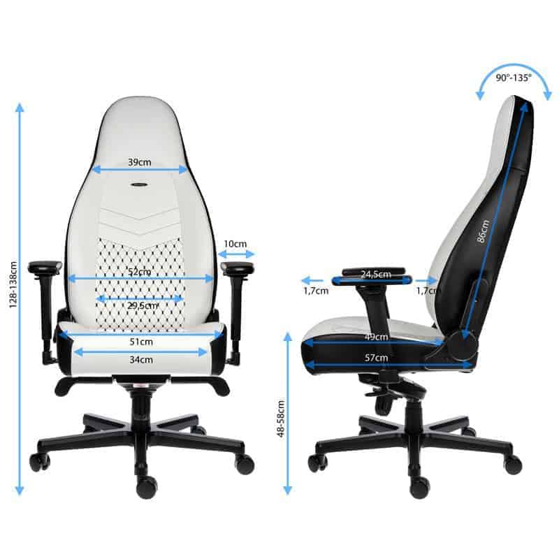 Fin 2017 le modèle Noir/Or s’ajoutait à la famille des ICON noblechairs. C’est à présent une couleur assez étonnante qui apparaît : le Blanc/Noir ! Toujours annoncé à 369,90€ comme ses prédécesseurs cela étoffe encore plus le choix et il devient difficile de ne pas trouver chaussure à son fessier.