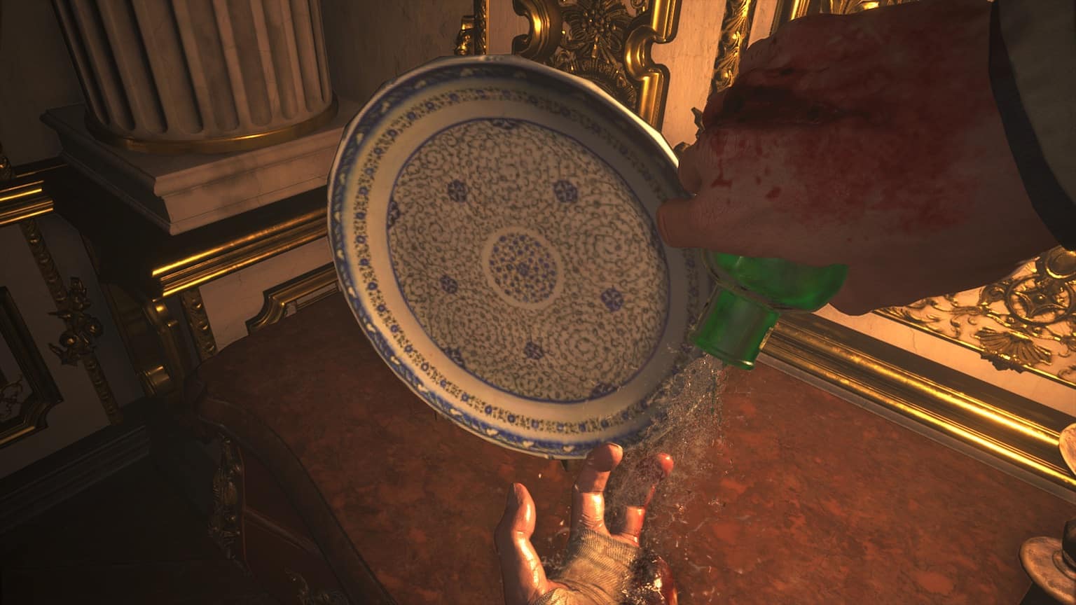 Maniabilité donc c’est nickel, graphismes éblouissants, réalisation au top… que reste-t’il ? Ah oui ! La difficulté !!! Là pour le coup si vous avez envie de vivre l’aventure sans trop souffrir il va falloir accepter de jouer en facile. Car dès le mode “normal” les ennemis résisteront à un nombre honteux de balles en pleine poire. Heureusement, côté soin, le héros (Ethan Winters) à la chance d’avoir un remède magique qui guérit TOUTES les blessures. C’est pas compliqué cette eau est tellement efficace qu’Ethan se recolle une main complète (vêtements inclus) en 3 secondes chrono. Amoureux du réalisme passez votre chemin.