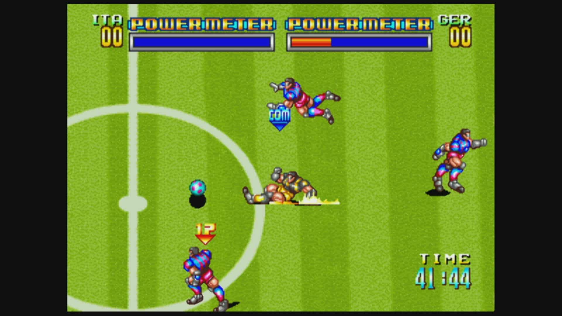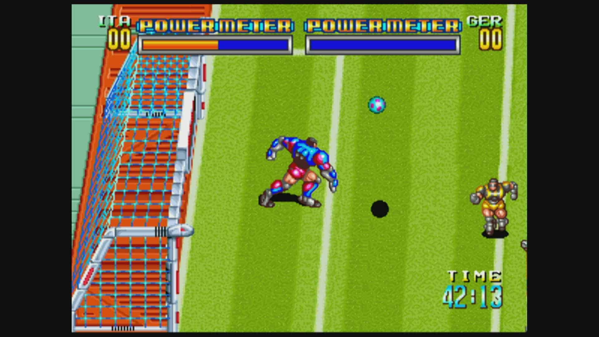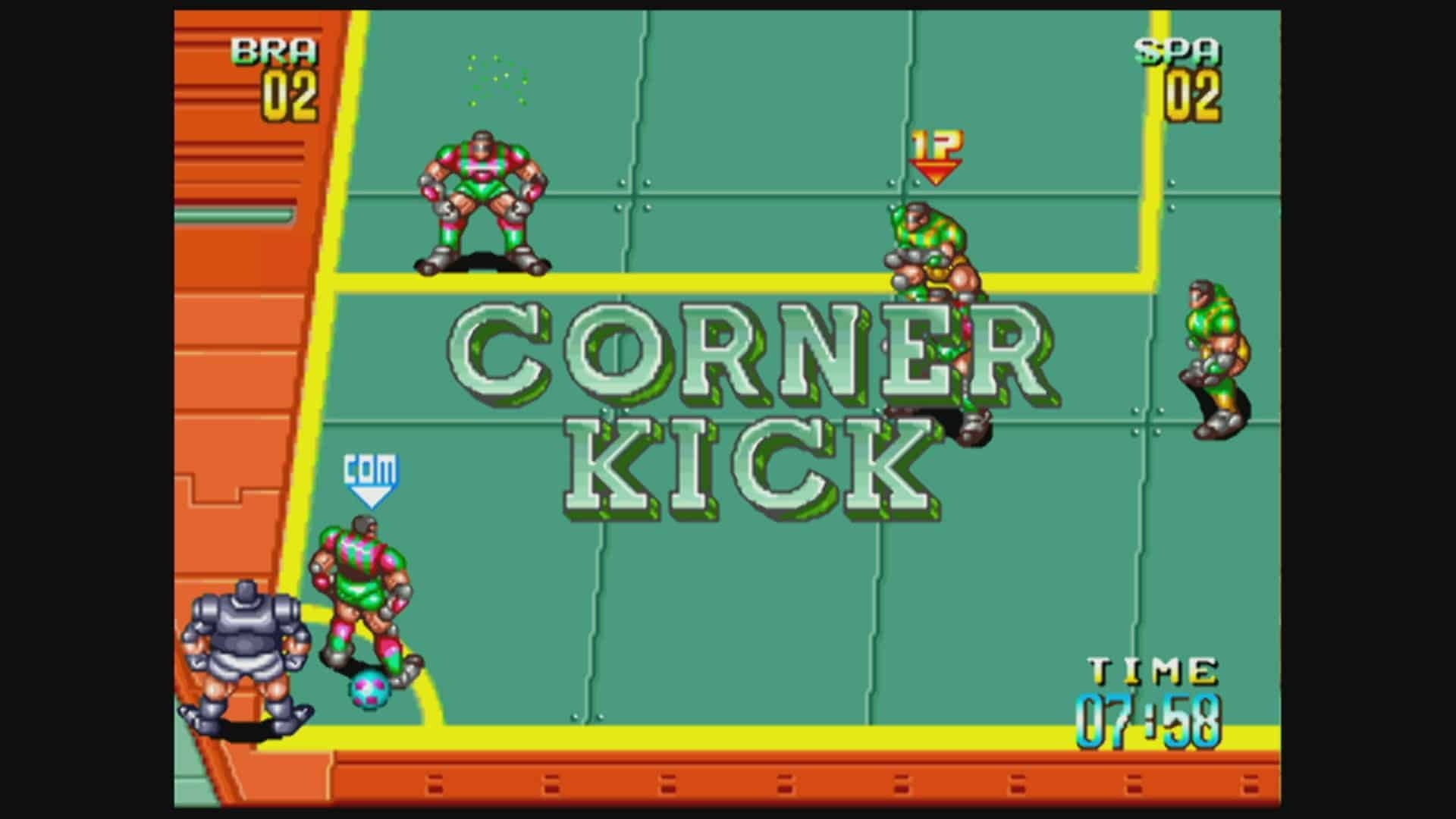 Alors que la console la plus bourgeoise de l’époque propose des jeux de VS Fighting à tout va depuis deux ans, les amateurs d’arcade attendent un titre autour du ballon rond. En mars 1992, SNK va sortir son premier jeu de football sur sa console AES. Soccer Brawl, sorti un mois plus tôt en arcade sur MVS va révolutionner le genre. Bien que le titre ne soit pas un modèle de perfection, son animation et son style futuriste vont séduire la presse et emballer les salles d’arcade. Soccer Brawl en met plein la vue avec un style pompé au film Cobra et plonge les joueurs dans une simulation sportive où tous les coups sont permis.