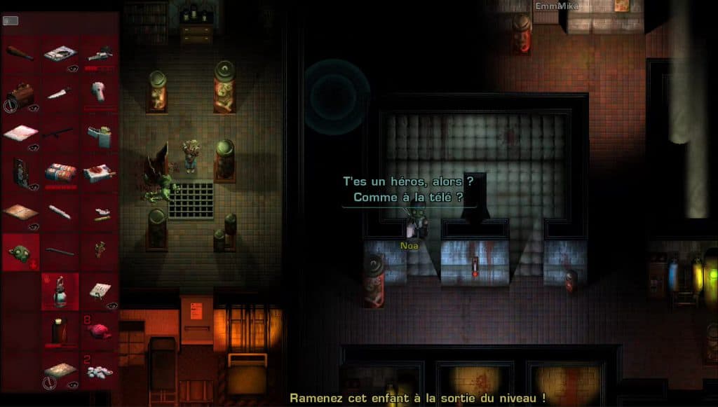 Graphiquement, 2Dark est difficile à juger vu que le jeu a été réalisé en pixel art. Comme je vous le disais plus haut, c’est un choix et pour ma part, cela ne me dérange pas. L’univers glauque est super bien représenté. Par contre, vu le coté hyper sombre du jeu, le manque de « netteté » graphique empêche parfois de voir au-devant de quoi on va avec le personnage. La bande son par contre est extrêmement bien faite et tous les bruits concourent à vous plonger dans cette ambiance polar en permanence. Que dire des pleurs d’enfants impossibles à atteindre qui risquent de vous glacer le sang. Jeunes parents s’abstenir.