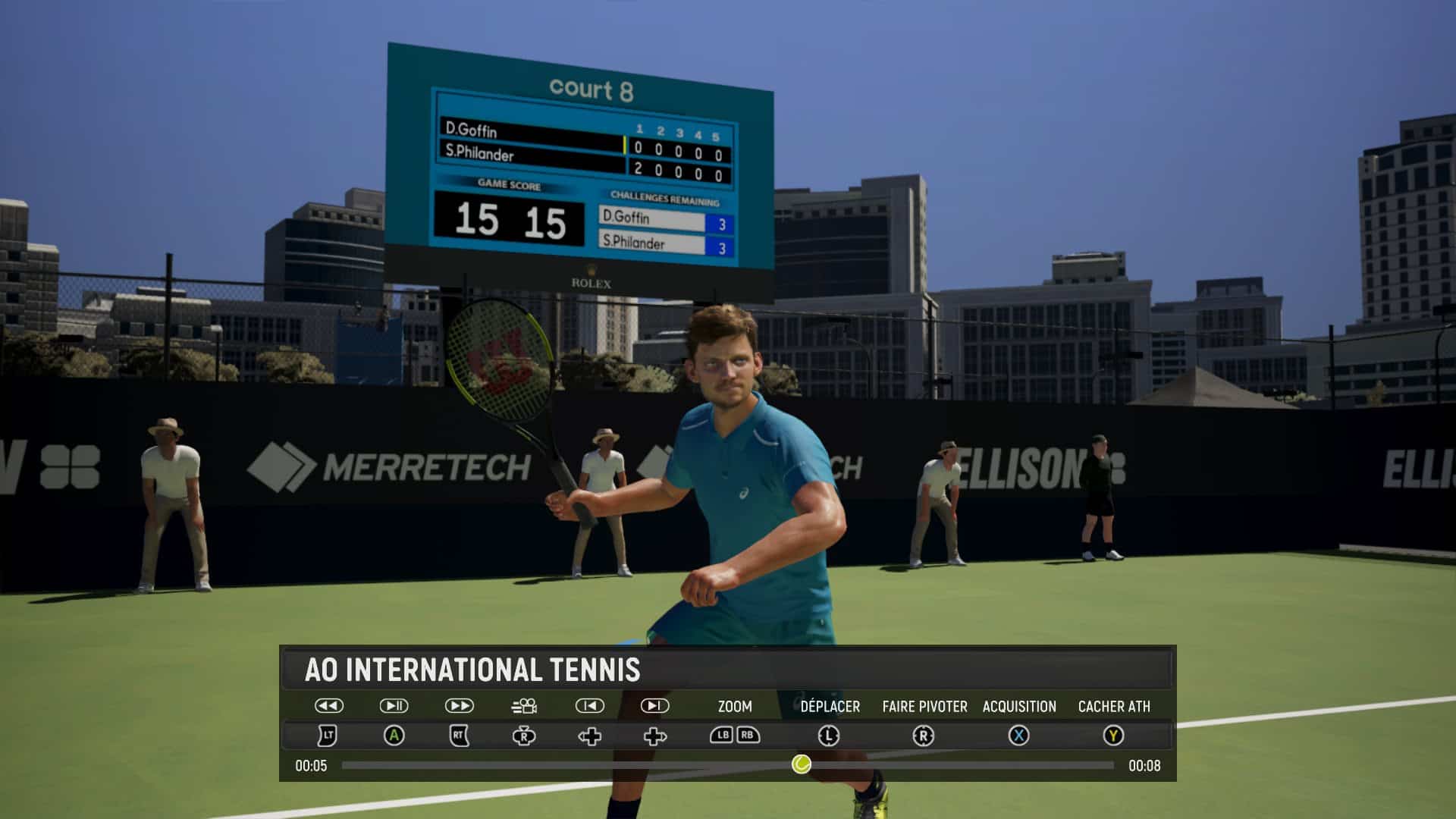 Une fois pris en main, on peut vraiment commencer à varier la puissance des coups ainsi que le placement de la balle. Vraiment bien fait. Malheureusement ceci a pour conséquence que AO International Tennis n’est pas un jeu casual que l’on prend en mains en 10 minutes. Perso, je préfère cela et je me suis vraiment laissé prendre au jeu après un peu de maîtrise.
