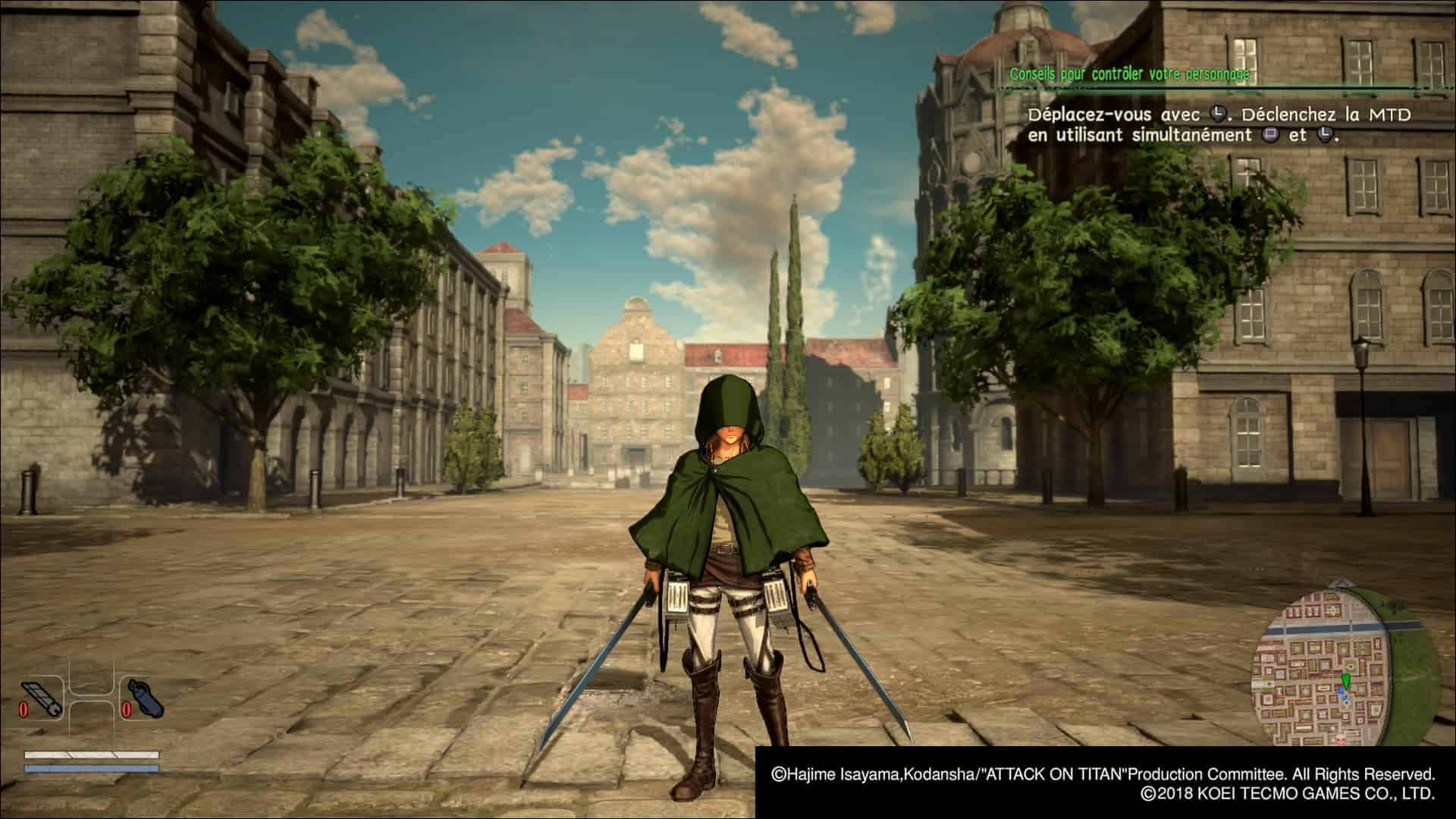 Préambule : je ne suis pas un grand fan de l’Attaque des Titans, ou Shingeki no Kyôjin pour ceux qui se la pètent. J’ai apprécié l’anime, j’aime beaucoup le concept mais je trouve le rythme du scénario excessivement lent pour une série qui sort une saison tous les 3 ans. Néanmoins, quand nous avons convenu dans l’équipe que je testerais Attack on Titan 2, j’ai acheté le 1 en occasion pour tâter le terrain (c’est Fred qui s’était chargé de le tester).