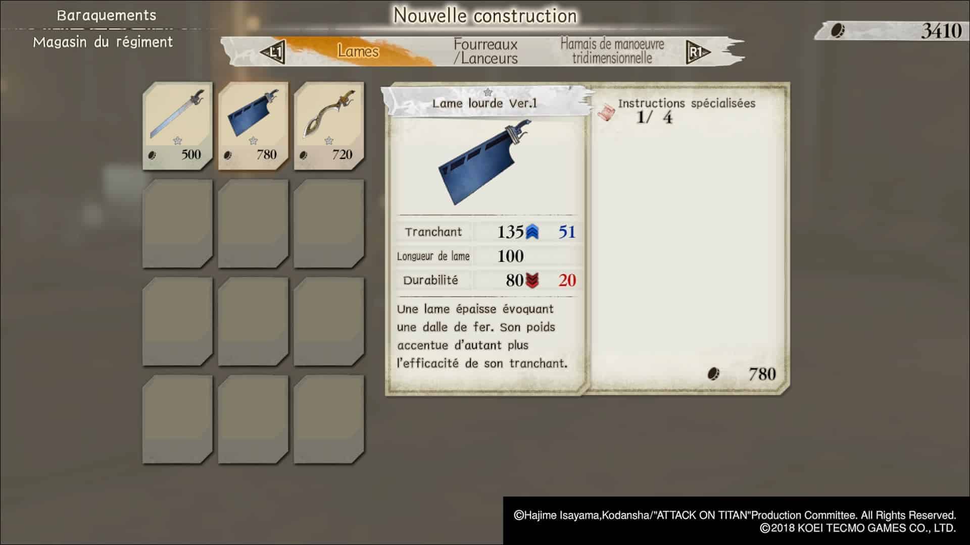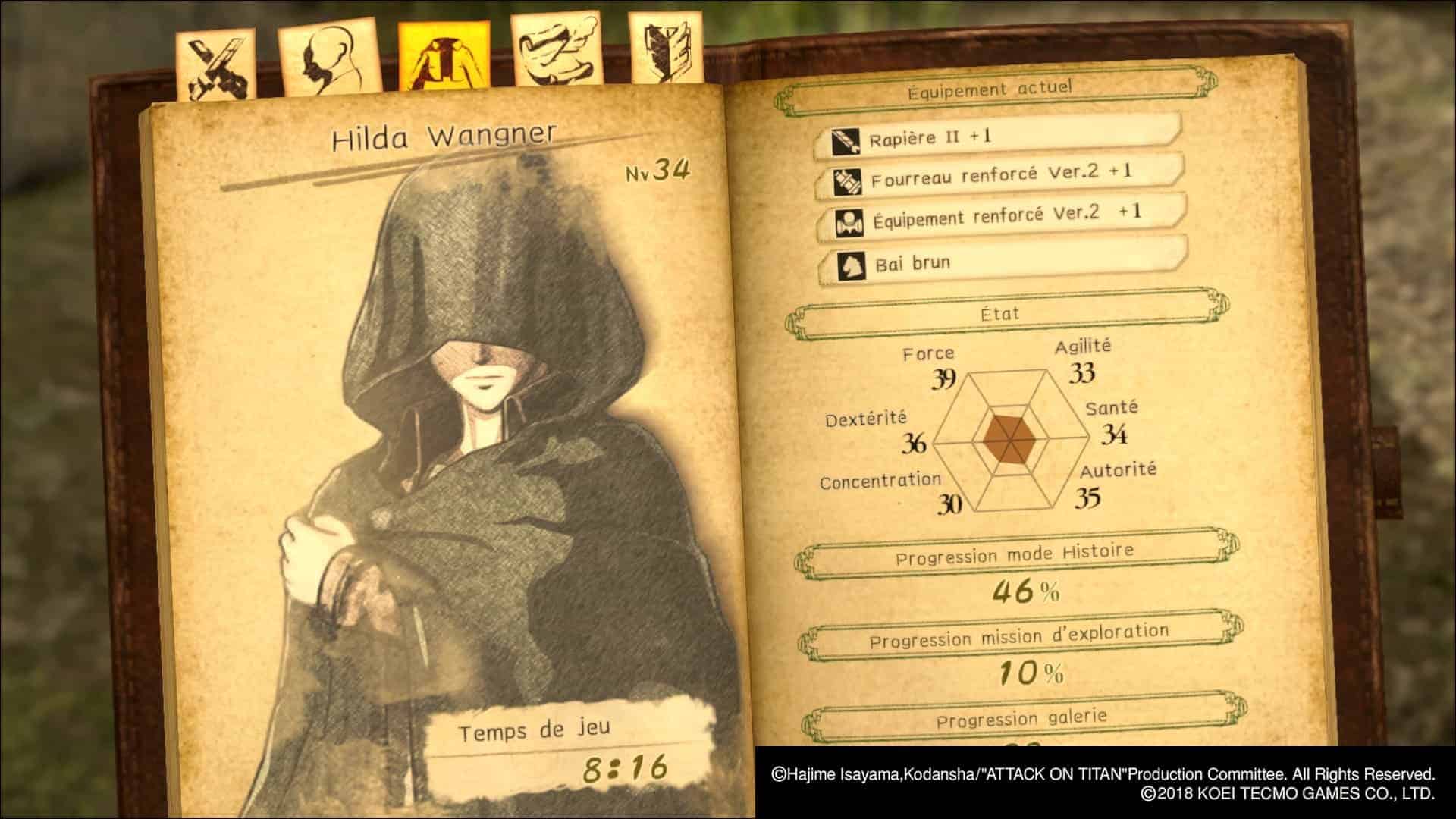 Malheureusement, l’intérêt s’arrête là. Il manque à cette idée ce que les anglophones appellent en jeu de rôle l’agency (ou agentivité, selon le néologisme québécois). En gros, notre avatar n’a pas de véritable impact sur la trame, ou même sur des éléments moins importants. Je suis conscient que cela pourrait dénaturer l’oeuvre originale mais quitte à nous donner un rôle dans l’univers de Shingeki no Kyîojin, autant qu’il ait de l’impact, non ? D’autant que le jeu se paie quelques libertés, notamment avec le design des équipements ou encore des éléments liés aux Titans. Alors pourquoi pas le faire pour son/sa protagoniste ? Ce n’est pas bien grave mais à plusieurs reprises, j’étais frustré de n’être qu’un simple spectateur de l’anime.
