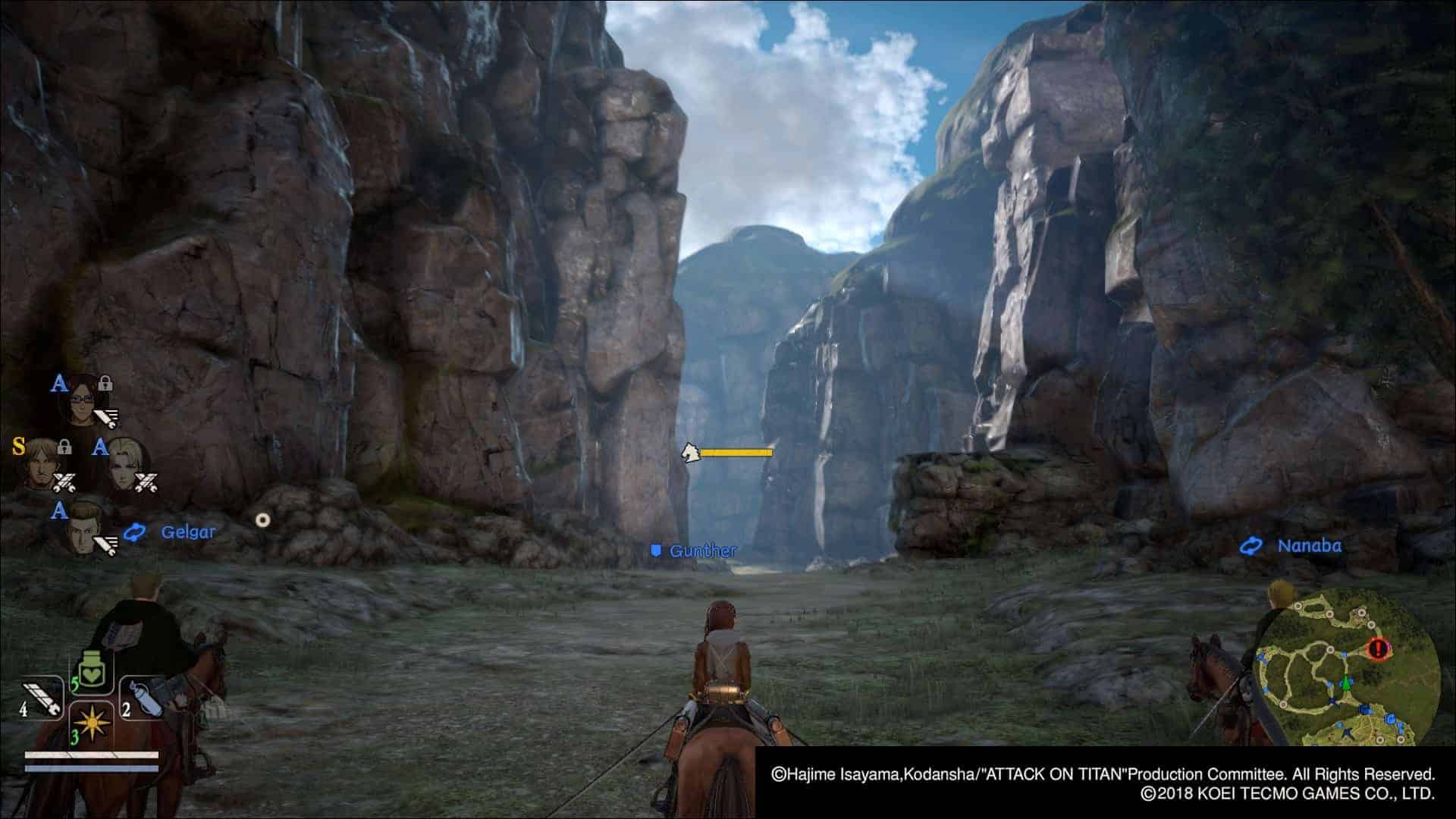 Mais c’est lors des combats que brille vraiment Attack on Titan 2. Moins faciles que dans le volet précédent, ils s’accompagnent d’une courbe qui incite à la progression, là où on pouvait s’en sortir sans trop investir auparavant. Il faudra donc veiller à fabriquer les bonnes armes et à les améliorer. Il faudra aussi économiser son équipement, au risque de se trouver en mauvaise posture. Les titans se montrent eux plus agressifs et prennent de l’initiative en interposant leur main quand on attaque, en sautant ou carrément en chargeant. Ce qui m’amène à la coopération avec les alliés, beaucoup plus sollicités dans cet épisode. Ils peuvent venir vous sauver, vous assister et donner lieu à de superbes cinématiques. Les grands déviants sont quant à eux plus coriaces et mobilisent une plus longue stratégie pour être vaincus. Tous les ingrédients sont réunis pour se sentir dans l’oeuvre de Hajime Isayama.