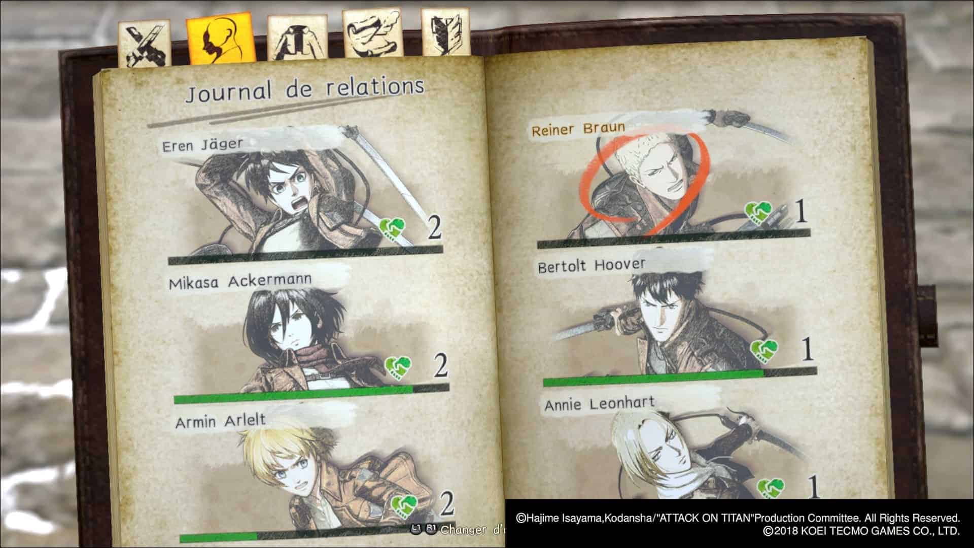 L’aspect du design qui a le plus bénéficié de cette suite reste toutefois l’interface. On en néglige souvent l’intérêt et pourtant elle apporte énormément à l’immersion. L’interface du premier épisode, digne d’un musô sur PS2, cède la place à quelque chose de plus abouti et de plus consistant. Justifiée par la tenue d’un carnet par notre personnage, cette interface contient une flopée d’éléments. Résumé de l’histoire (très utile aussi), statistiques, relations avec les alliés, compétences associées, informations sur l’univers de la série… le carnet regorge d’éléments intéressants tout en restant lisible et agréable à parcourir (malgré une police d’écriture choisie par un stagiaire). Seul gros bémol : la musique. Quand on connaît les génériques vachement entraînants de l’anime, on regrette de ne pas les retrouver. En revanche, les thèmes avec chorales respectent l’esprit de l’oeuvre.