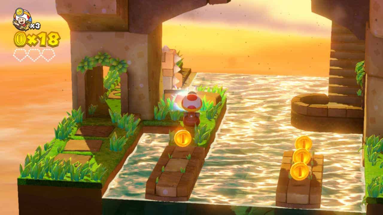 Après avoir découvert une étoile de puissance avec sa compagne Toadette, Captain Toad et celle-ci sont surpris par un oiseau géant du nom de Wingo qui leur vole l’étoile de puissance et kidnappe Toadette. Bien décidé à ne pas se laisser faire, Captain Toad part à la recherche de son amie. Votre but sera de parcourir des niveaux en mode jeu de plateformes pour retrouver les gemmes de puissance, champignons dorés et autres étoiles de puissance. Il faudra quelque peu faire fonctionner vos méninges si vous souhaitez tout trouver. Certains niveaux nécessitent en effet de bouger des plateformes et découvrir des endroits cachés pour retrouver les trésors. Il faut donc jouer réellement sur la 3D et les perspectives en explorant chaque recoin.