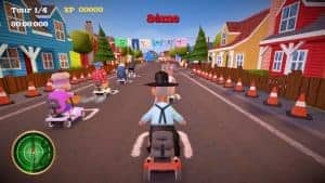Comme Mario Kart, Coffin Dodgers pourrait trouver son intérêt dans le mode multijoueurs pour les soirées entre amis. Mais même si il est vrai que c’est sympa de se bagarrer entre vieux, le plaisir est tout de même assez limité par la faiblesse du contenu. Les courses sont assez bien diversifiées, mais les petits vieux n’ont aucune particularité. Que vous preniez Mami ou Super Papi, le résultat sera le même.