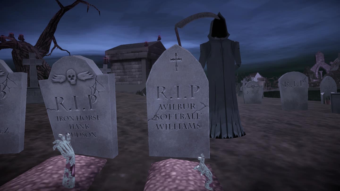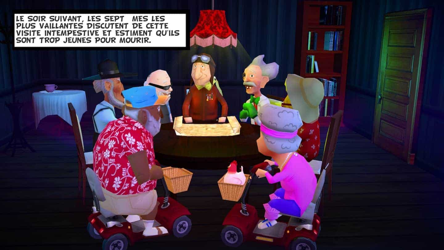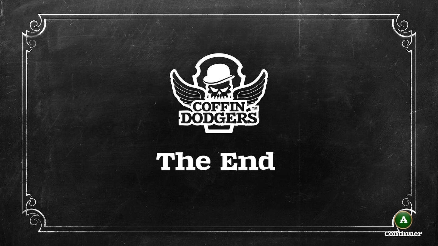 Vous l’aurez compris, les graphismes ne m’ont pas convaincu. Je vois bien que le style cartoon est volontaire et pas dérangeant, mais j’aurais aimé des textures plus travaillées ! Heureusement pour Coffin Dodgers, on ne juge pas un jeu sur un seul point. Et je dois dire que pour le reste, le jeu se défend plutôt pas mal. Je vais fermer les yeux sur les lettres avec accent qui n’apparaissent pas durant le scénario de début et mettre ça sur le dos du coté “petit budget”.