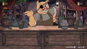 Pas besoin d’avoir une immense culture pour se rendre compte que Cuphead s’inspire plus qu’ouvertement des dessins animés des années 30-40. Et pas seulement dans le style graphique mais aussi dans ses personnages ou ses musiques. L’histoire servant de fil rouge à ce jeu de type boss fight est elle aussi tout à fait dans le ton. Vous êtes Cuphead, une gentille petite tasse anthropomorphe aux allures de jeune garçon mais ayant tout de même l’âge d’aller jouer au casino apparemment. Si, comme moi, vous décidez de vivre l’aventure à deux joueurs alors votre acolyte incarnera Mugman qui lui ressemble comme deux gouttes de thé mais en bleu.
